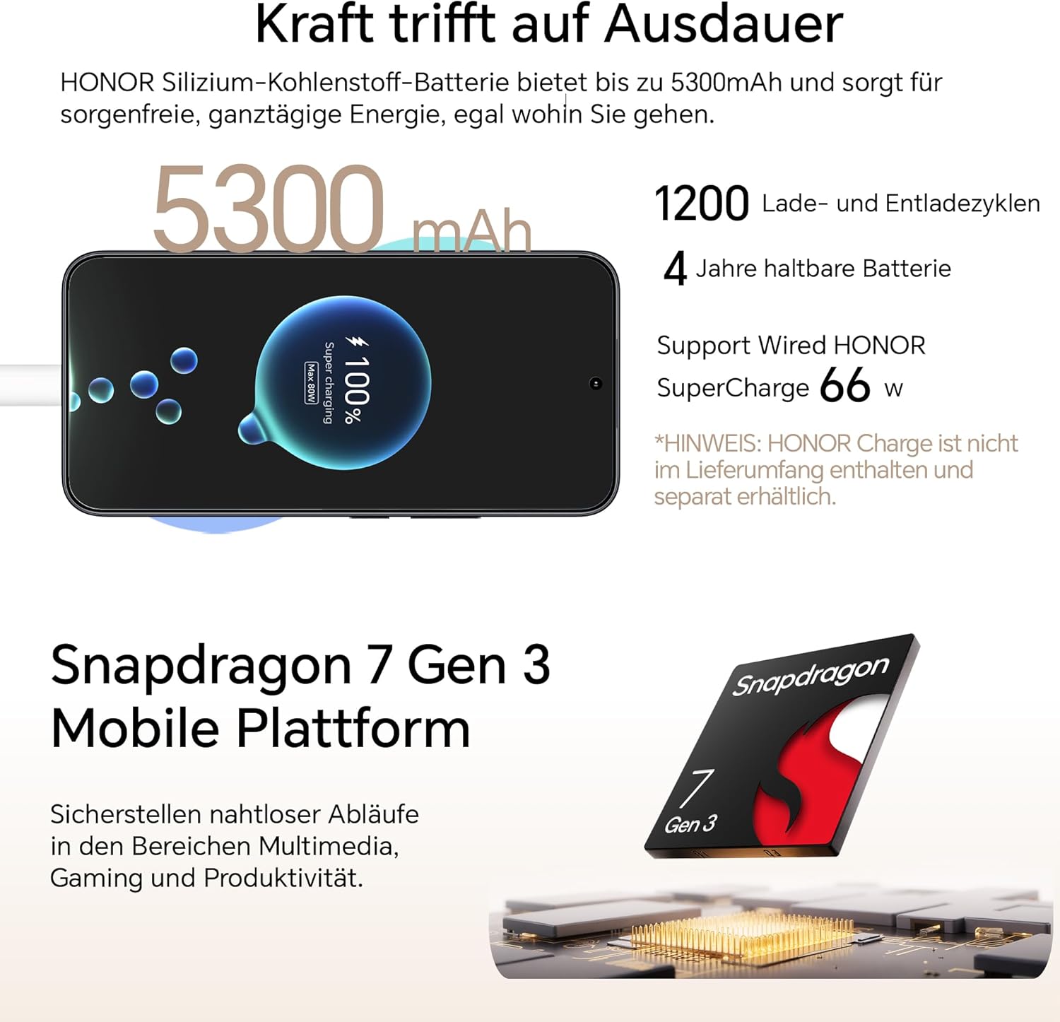 - 【5300mAh Silizium-Kohlenstoff-Batterie】-Der leistungsstarke 5300mAh-Akku hält auch bei intensiver Nutzung durch. Unterstützt 66W SuperCharge für schnelles Laden, während die Silizium-Kohlenstoff-Technologie 80% Kapazität nach 4 Jahren (1200