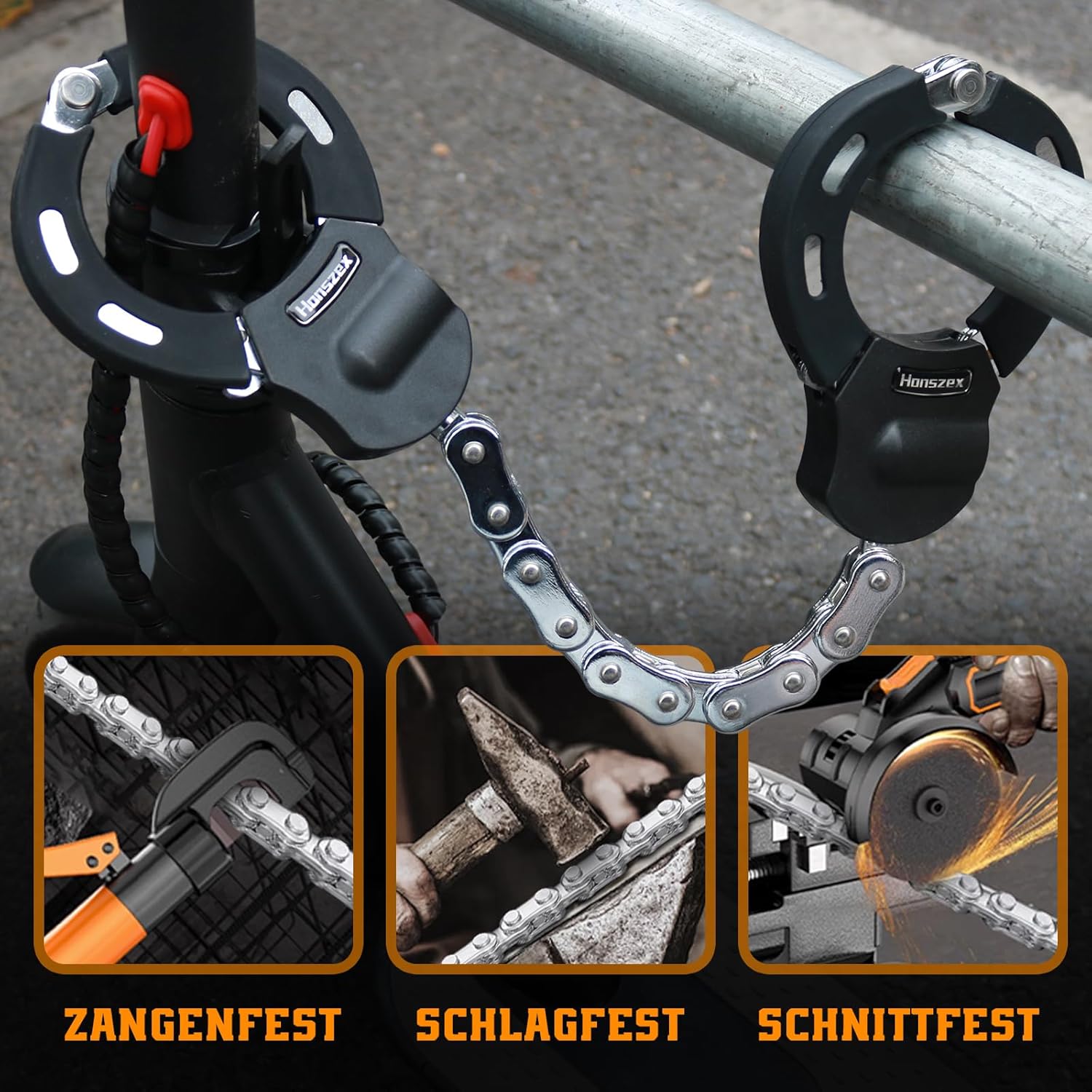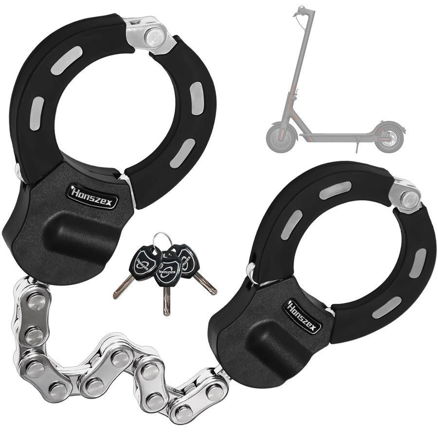 - 【E Scooter Schloss mit Schlüssel】Gemacht für Elektroroller, löst das Problem, dass herkömmliche Schlösser nicht mit Elektrorollern funktionieren, dieses hochbelastbare handschellenförmige Kettenschloss bietet zuverlässigen Diebstahlschutz für