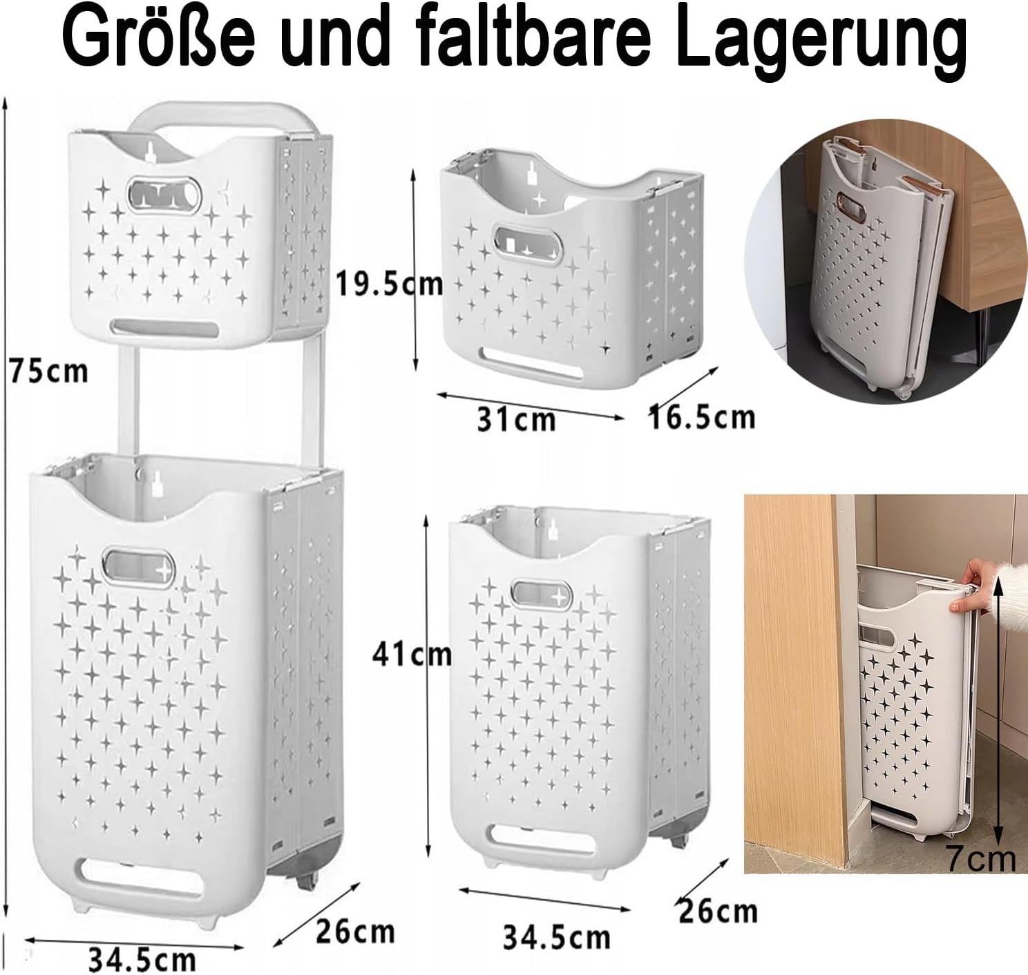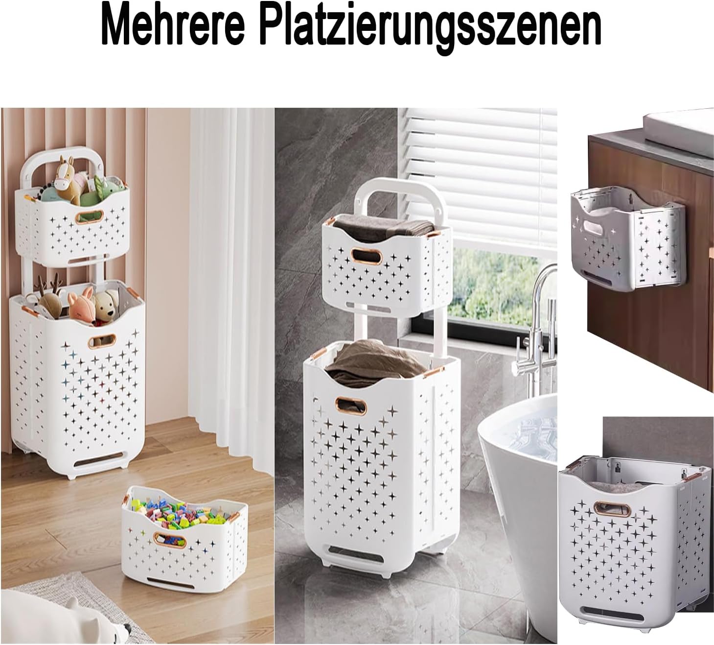 - 【Mehrere Szenarien für die Platzierung und ein erstklassiges Einkaufserlebnis】Dieses Wäschekorbset bietet eine Vielzahl von Aufstellmöglichkeiten für verschiedene Bereiche in Ihrem Zuhause. Da er sich platzsparend zusammenklappen lässt, ist er