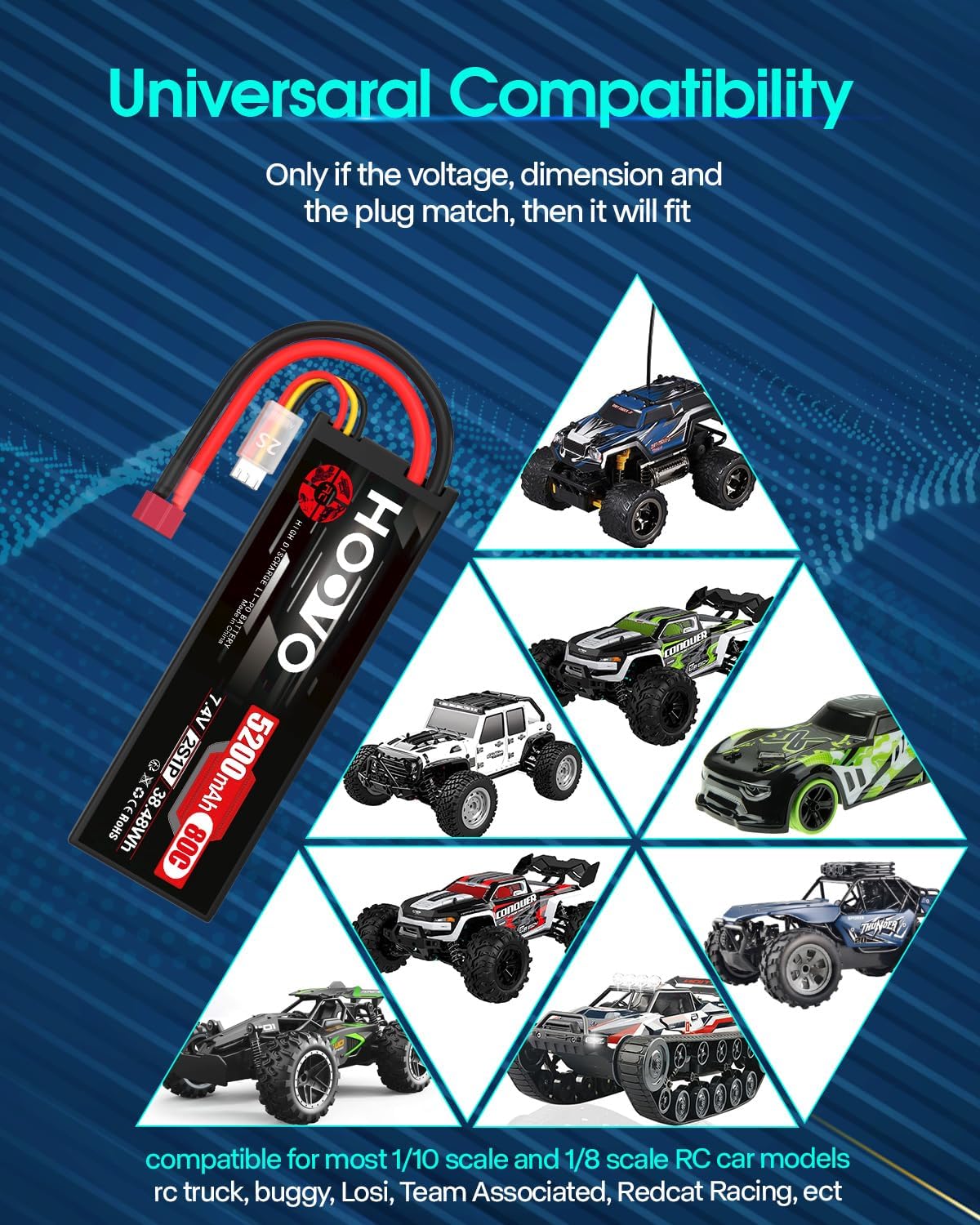 HOOVO RC Batterie 2S LiPo Akku 7,4V 5200mAh 80C Hardcase mit Deans Stecker Batterie Ersatzakku für R