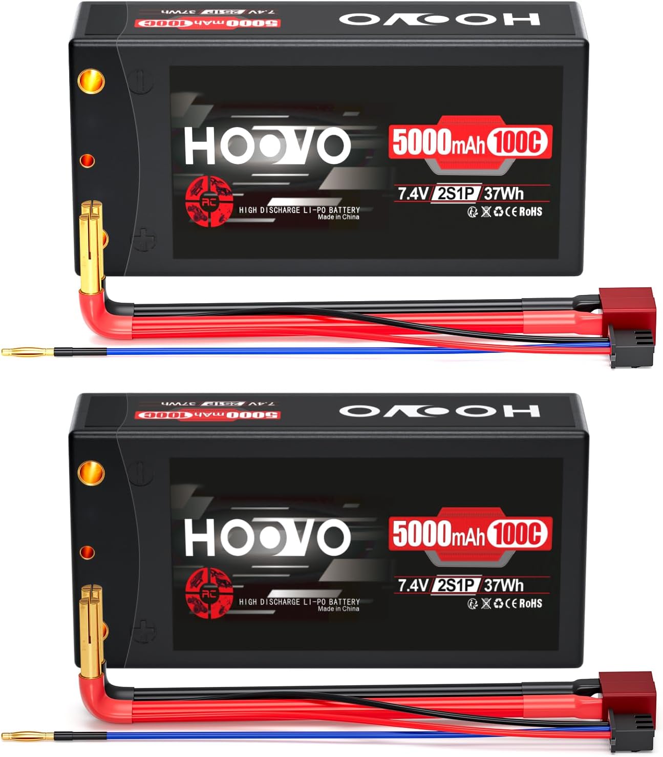 HOOVO RC Batterie 7,4V 5000mAh 100C 2S Lipo Akkus HardCase mit 4.0 mm Banana to Deans Plug für RC Au