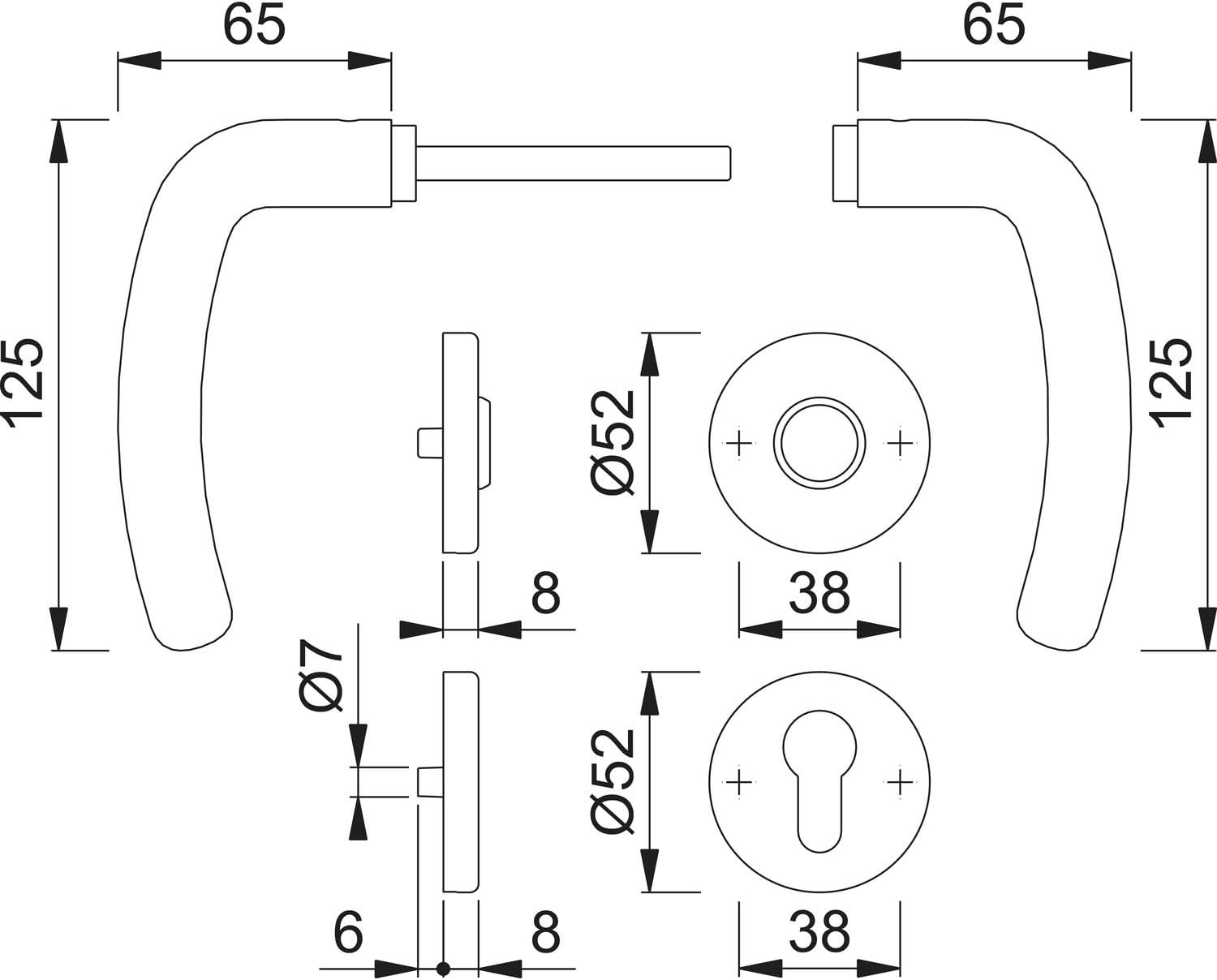- Vierkantstift (mm): Schnellstift fest 8 mit A-Hülse auf 8,5; Türstärke (mm): 37 - 42