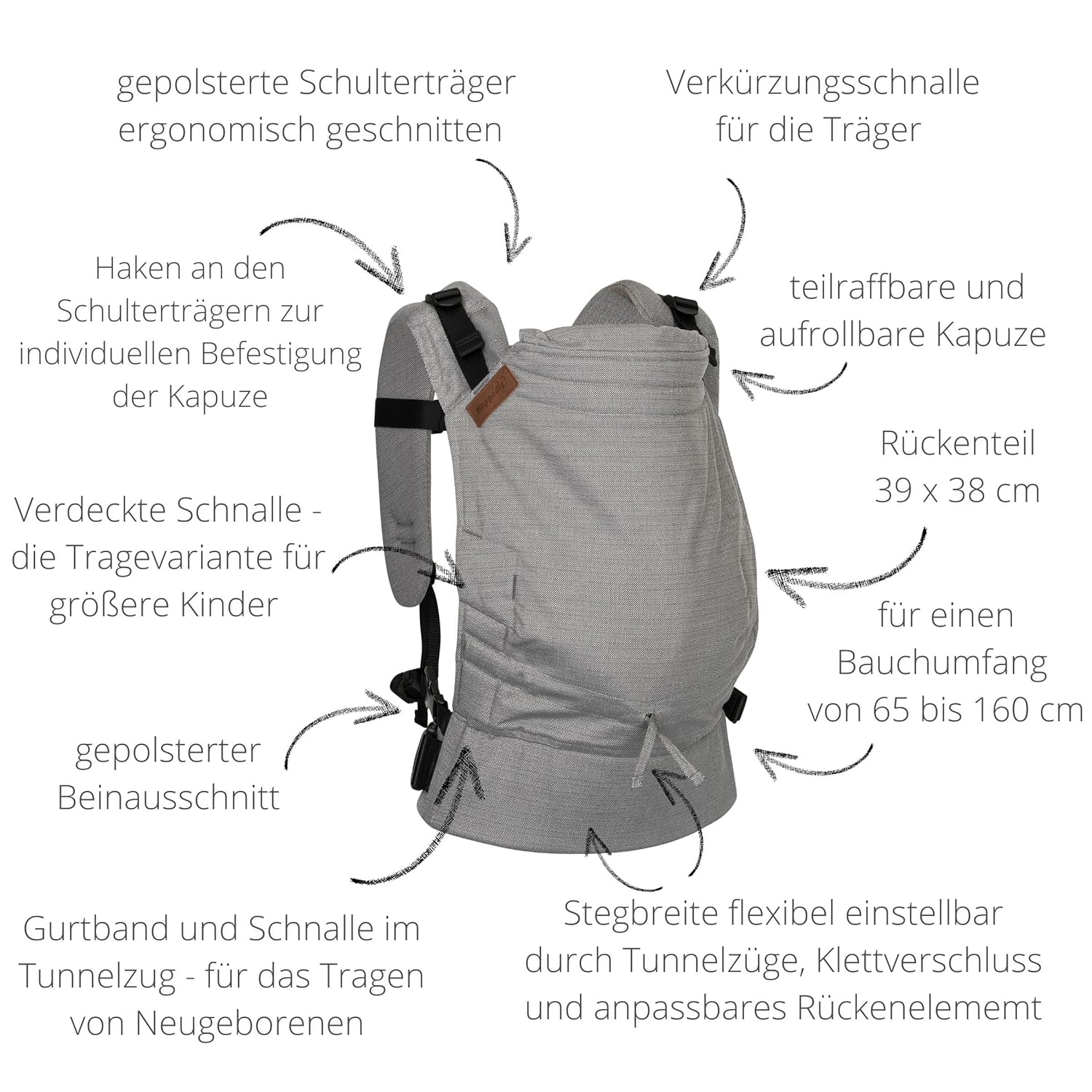 - NUR DAS BESTE: Der Oberstoff besteht aus 100 % Bio-Baumwolle und alle Bestandteile der Trage werden regelmässig auf Schadstoffe überprüft. Mit Aufbewahrungsbeutel und ausführlicher, bebilderter Anleitung.