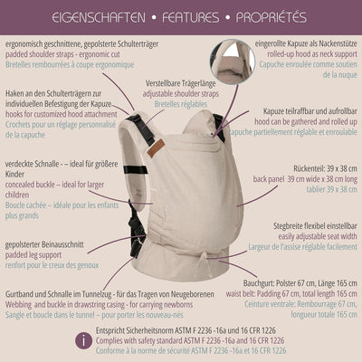 - NUR DAS BESTE: Der Oberstoff besteht aus 100 % Bio-Baumwolle und alle Bestandteile der Trage werden regelmässig auf Schadstoffe überprüft. Mit Aufbewahrungsbeutel und ausführlicher, bebilderter Anleitung.