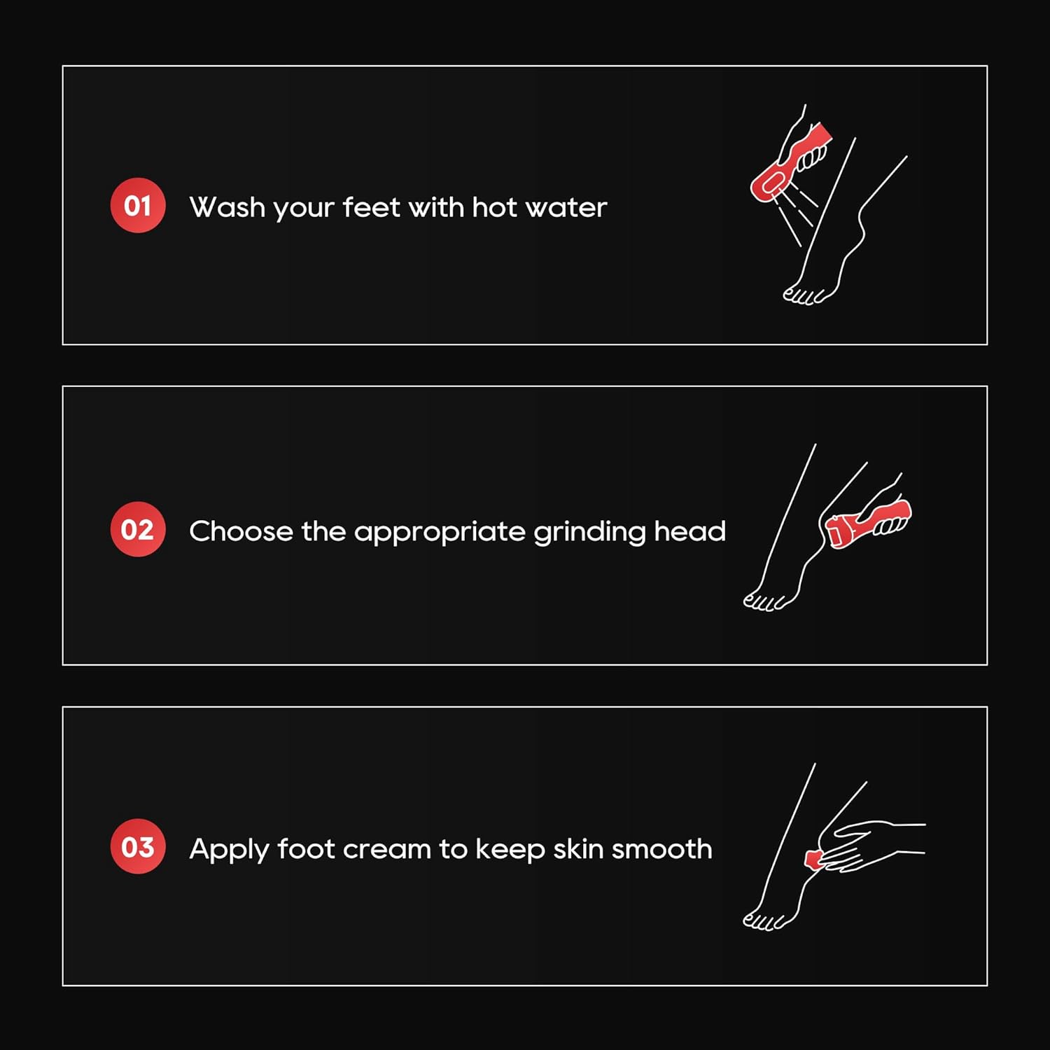 - Elektrischer Hornhautentferner: Mit diesem Gerät kann die Hornhaut auf den Füssen (einschliesslich der Fusssohlen und anderer Fussbereiche) sicher und effektiv entfernt werden.