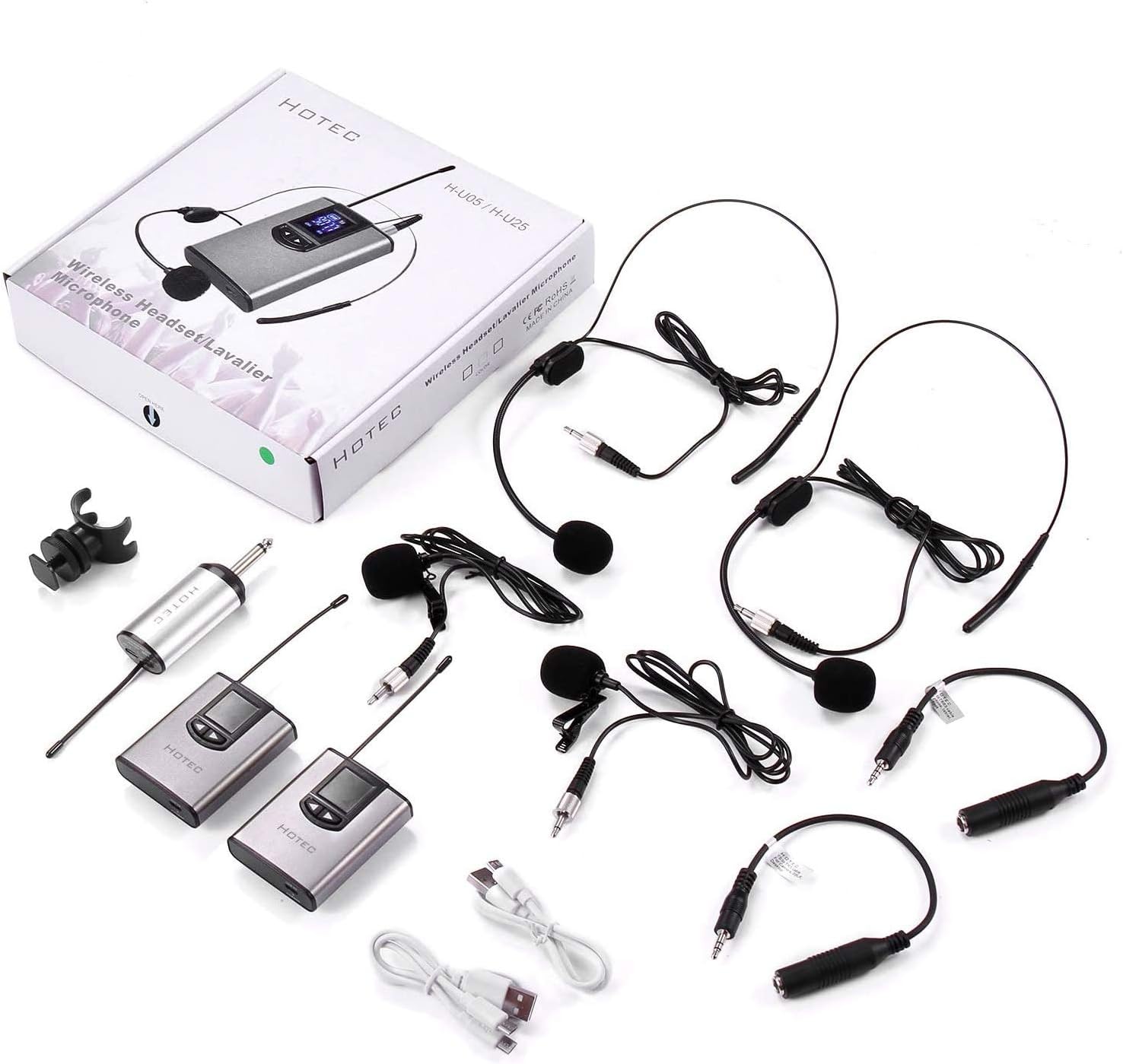 - UMFASSENDE KOMPATIBILITÄT: Dieser tragbare Empfänger in diesem wireless Headset- / Lavalier-Mikrofonsystem von Hotec verfügt über einen 6,35 mm (1/4 ") -Ausgang. Sie können ihn an jedes Ihrer Soundsysteme wie PA, Mixer, Lautsprecher, Verstärker und