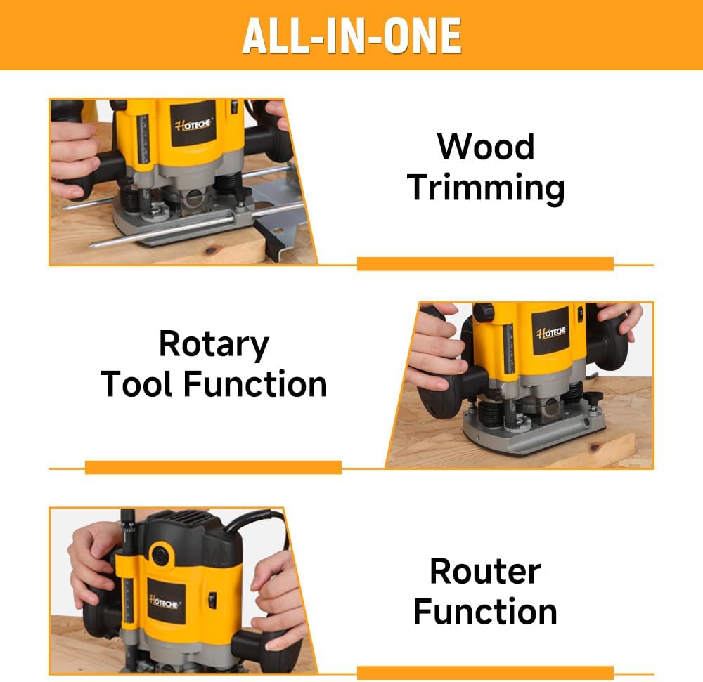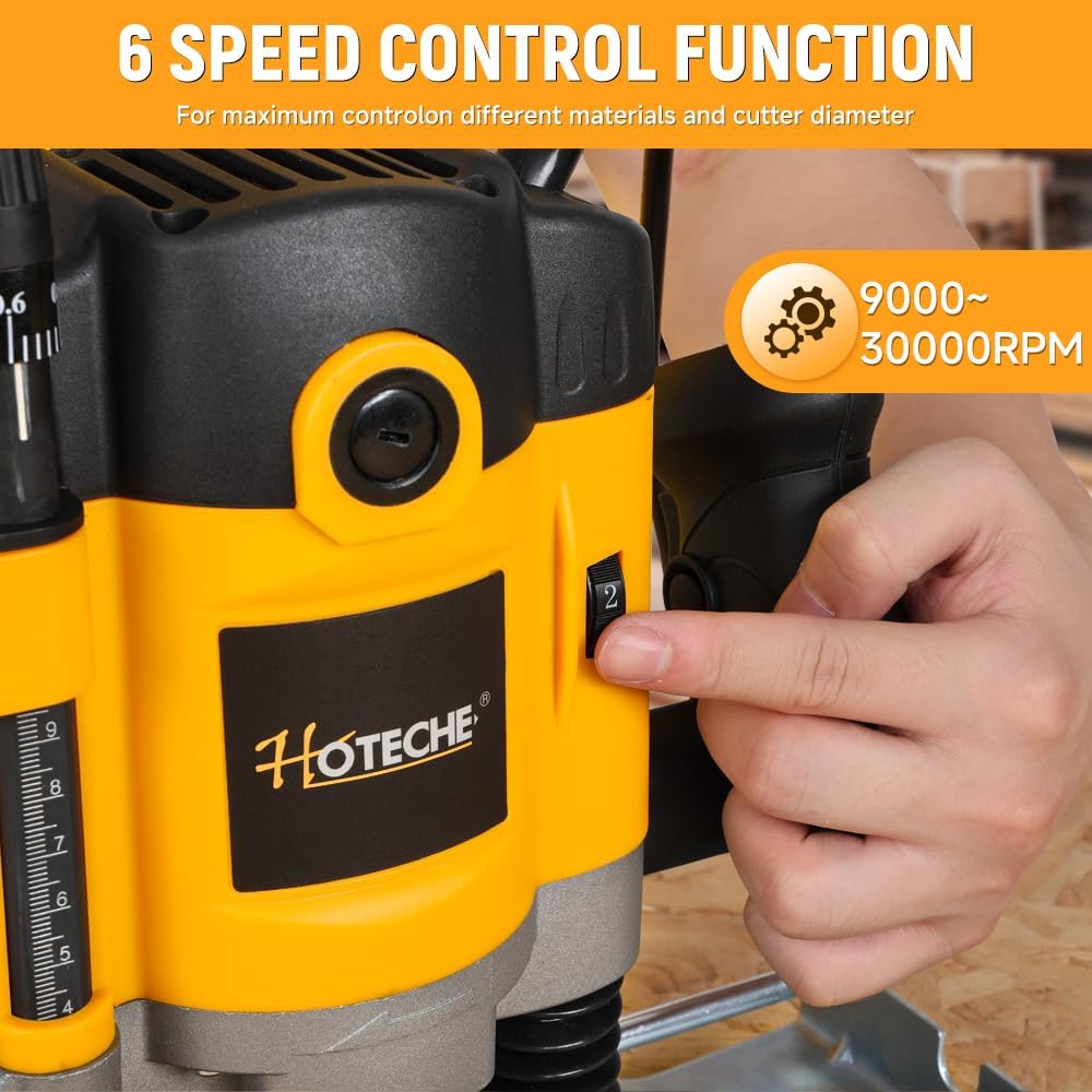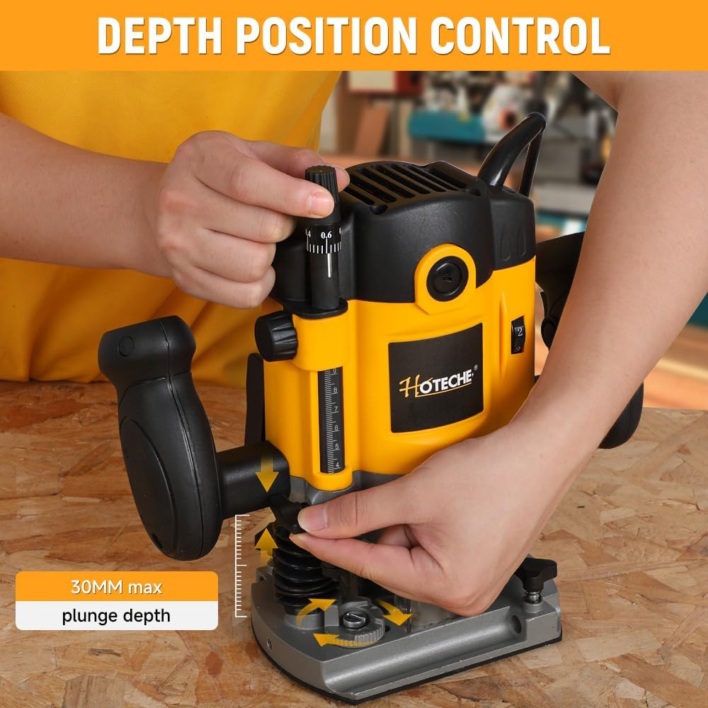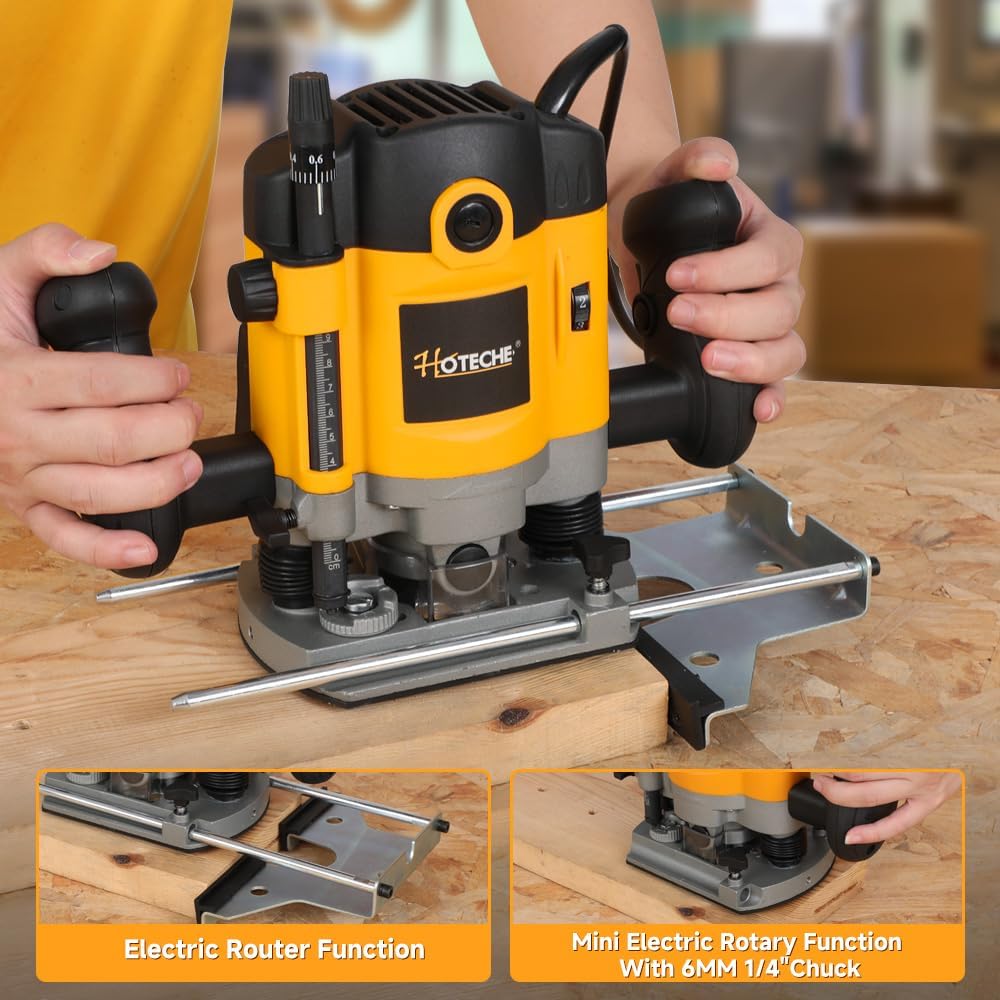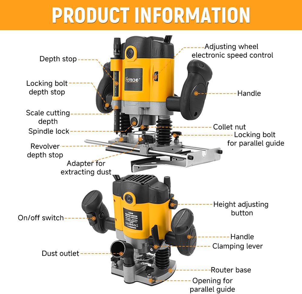 - - Leistungsstarker 1200W Holzoberfräse von Hoteche für präzise Holzbearbeitung.