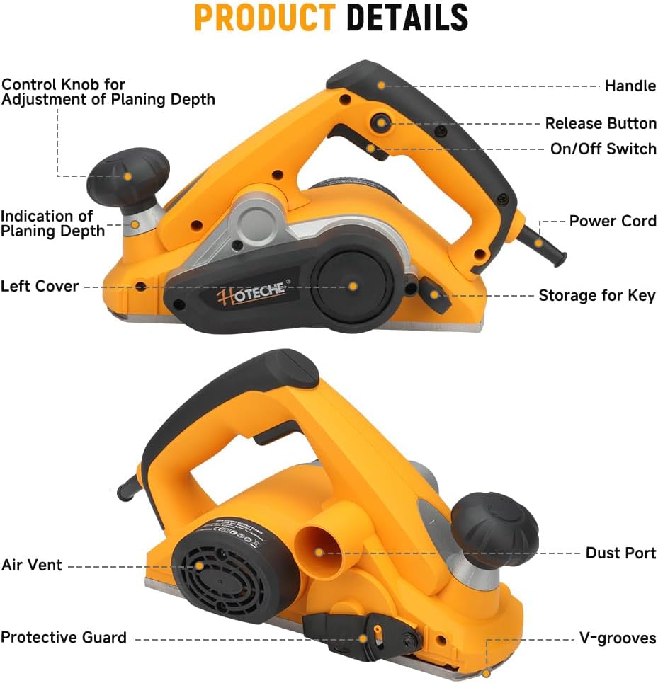 - - Mit einer Hobelkapazität von 82*3mm und einem Aluminiumsockel bietet der Hoteche Hobel eine zuverlässige und präzise Leistung.