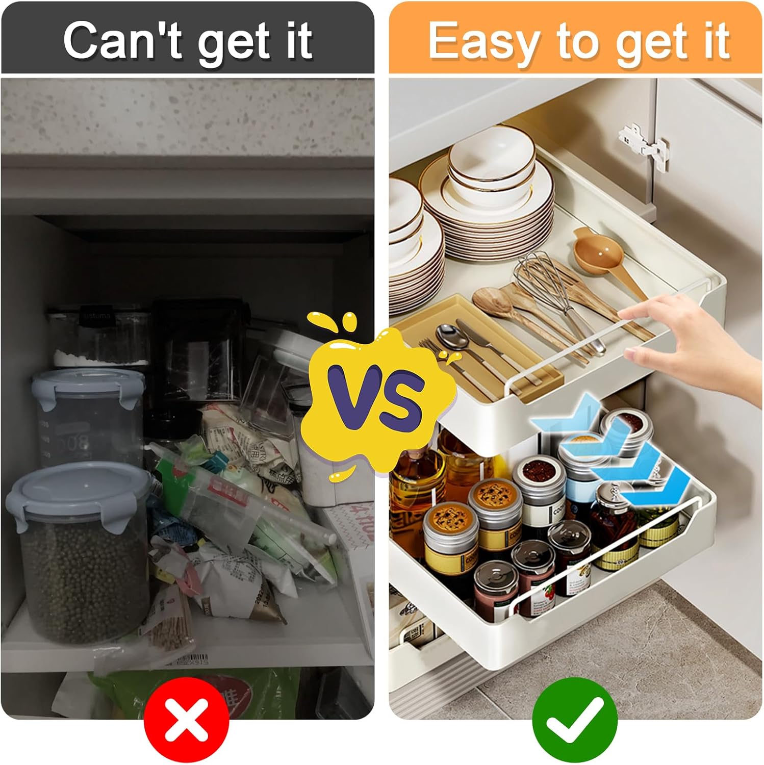 • [Efficient Space Saving teleskopschublade nachrüsten]:Der ausziehbare küchen organizer schrank ist die beste Wahl für alle Schränke, Küchen und Vorratskammern. Sparen Sie mehr Stauraum in Ihrer Küche. Dieser küchenschublade ist perfekt zum