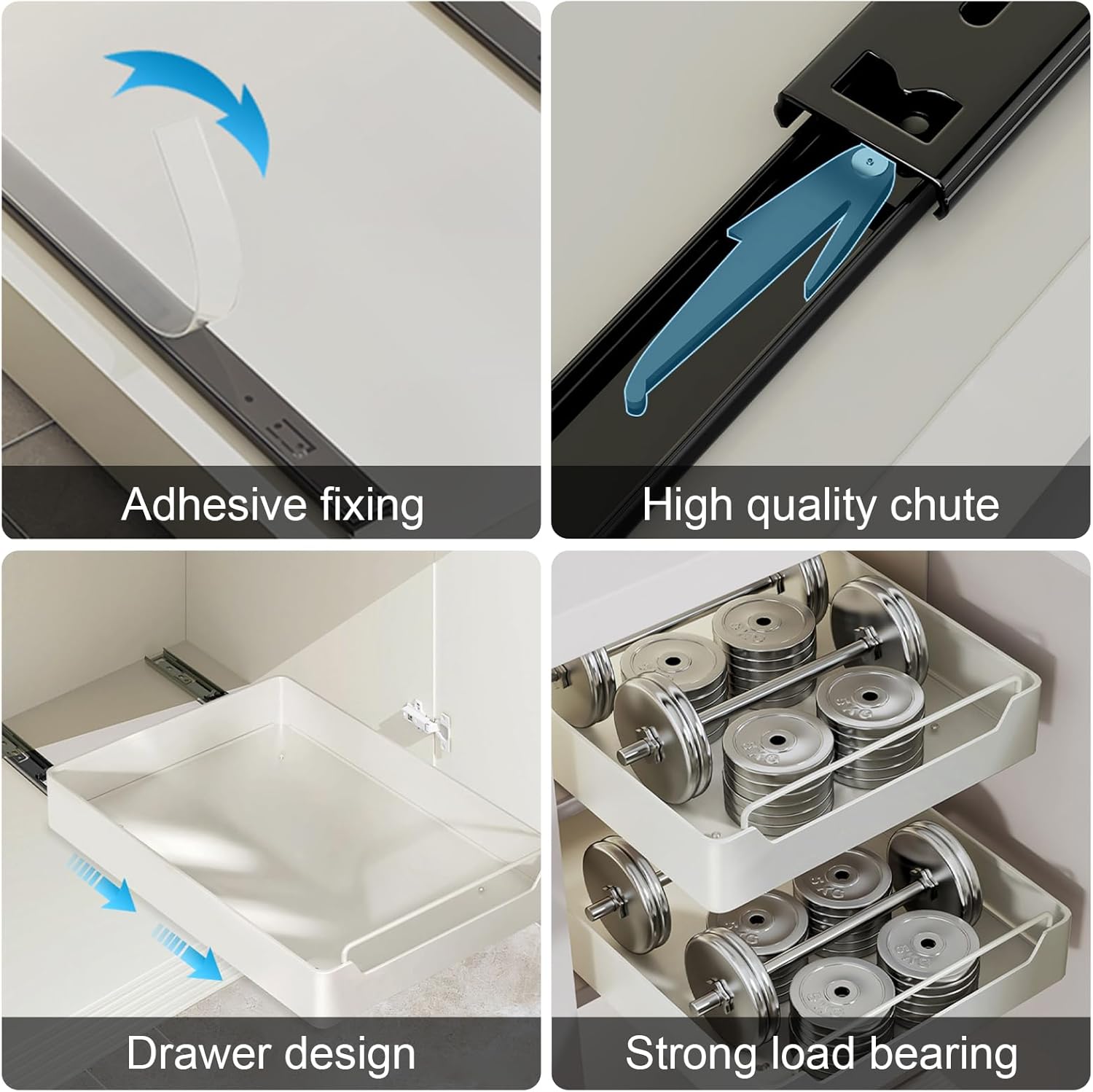 • [küchenschrank organizer hat kein Bohren und Schrauben]:HOTOOLME ausziehbare Küchenschubladen sind sehr einfach zu montieren. Einfach den Klebestreifen an der Unterseite des teleskopschublade zum kleben abreissen und er klebt fest, ohne dass gebohrt