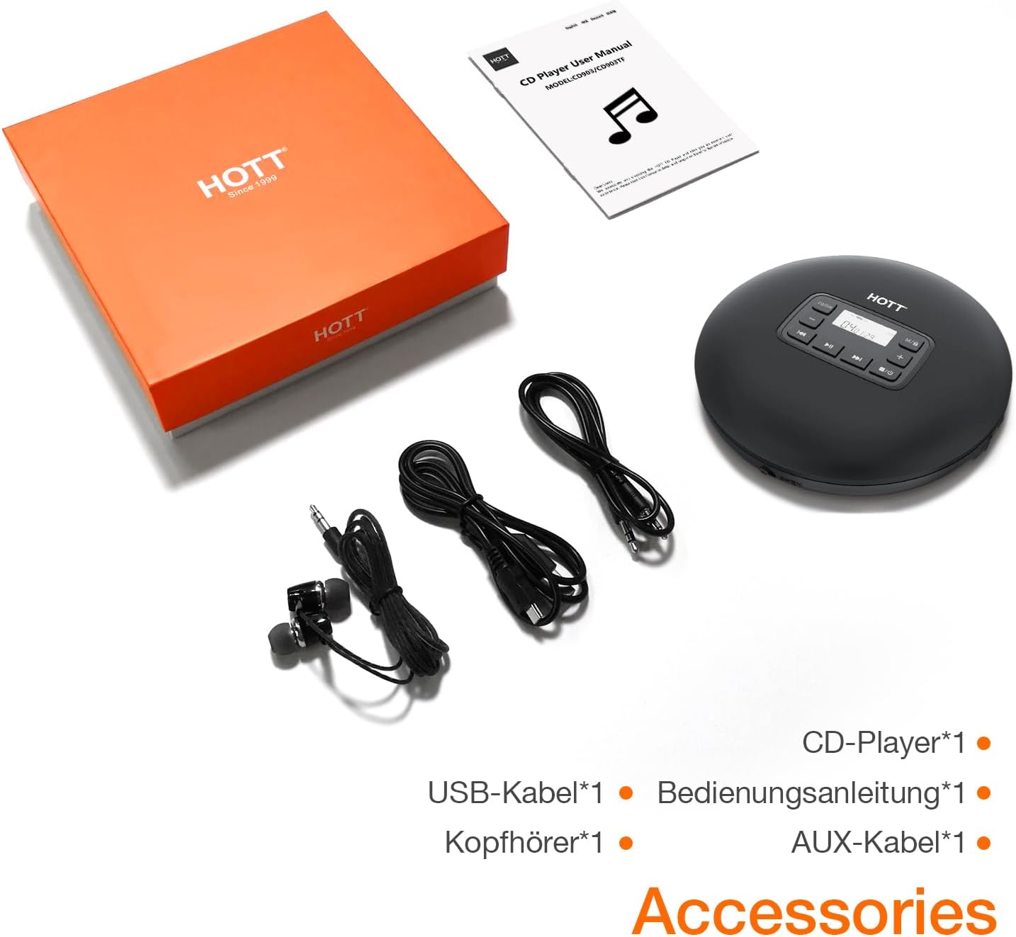 - Zuverlässiger und erstklassiger Service: Wir stellen Ihnen ein umfassendes Kundendienstsystem zur Verfügung, das per E-Mail und Online-Chat verfügbar ist. Der HOTT CD-Player bietet ein 30-tägiges Rückgaberecht mit 1 Jahr Garantie und lebenslanger