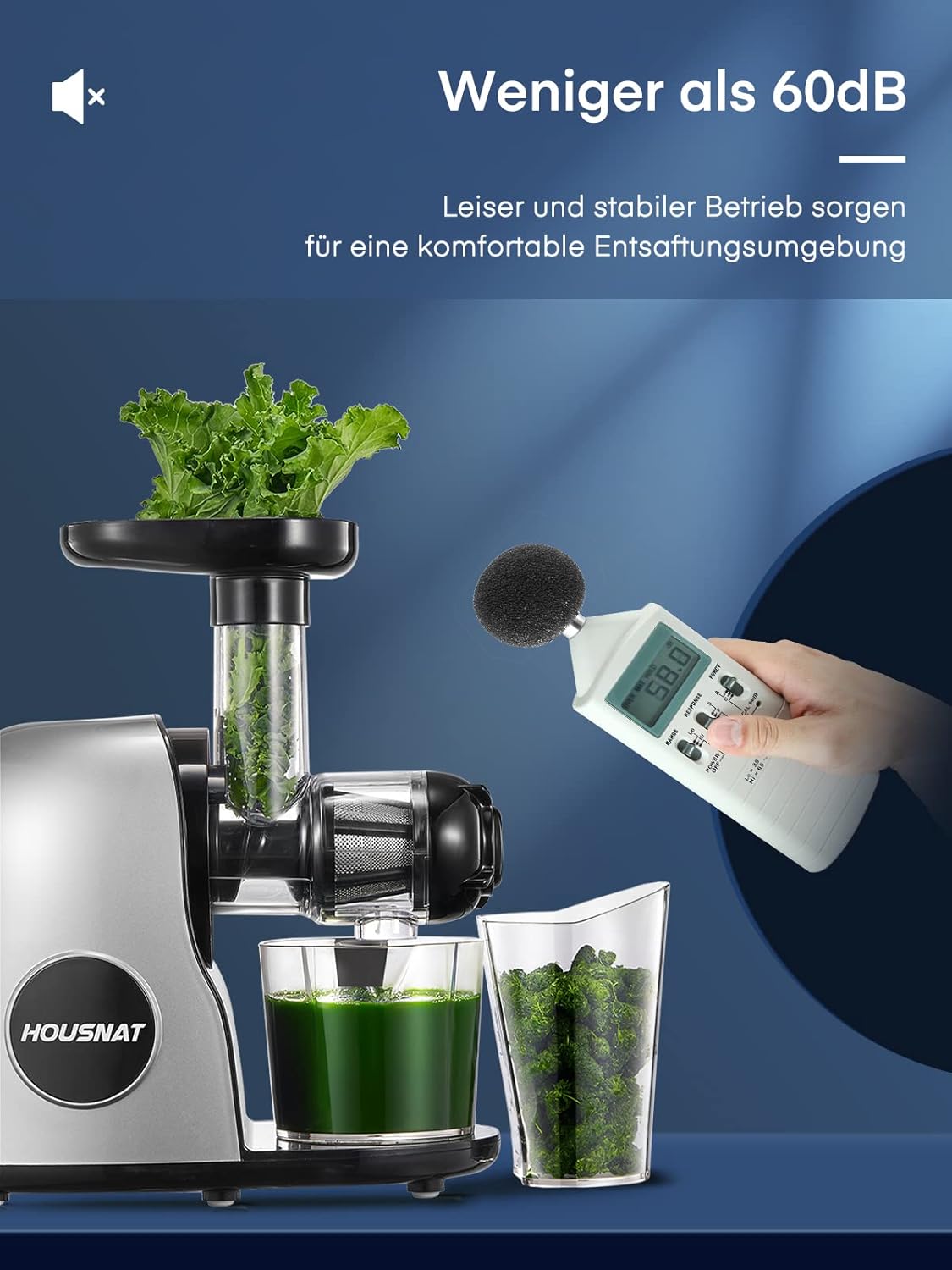 - đ„ăMaterialien in LebensmittelqualitĂ€t und leiser Motoră Der Entsafter verwendet einen leisen Gleichstrommotor mit niedriger Geschwindigkeit, der mit intelligenten Chips ausgestattet ist, sodass er alle 20 Minuten automatisch stoppt. LĂ€uft unter 60 Dezibel, sodass Ihre Nachbarn nicht gestört werden. Alle abnehmbaren Teile bestehen aus lebensmittelechtem Material, um sicherzustellen, dass Sie beim Entsaften eine ruhige Umgebung und ein gesundes Leben geniessen.