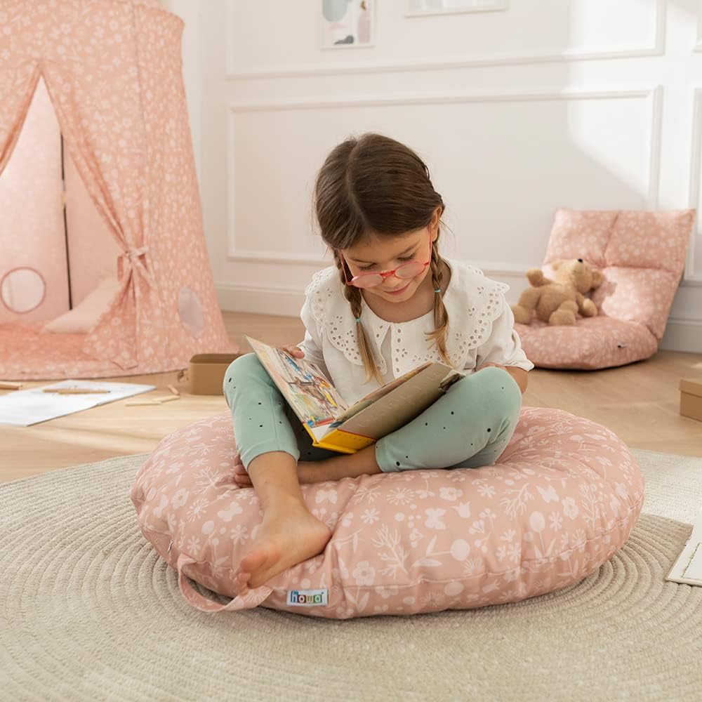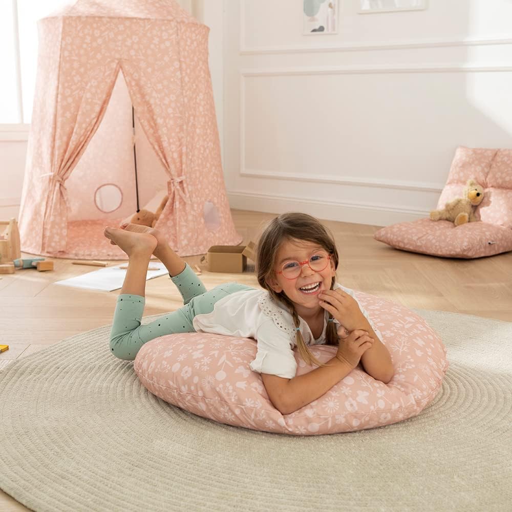 - Das gemütliche Sitzkissen bietet eine perfekte Unterlage um es sich auf den Boden, im Spielzelt oder in der Kuschelecke bequem zu machen.
