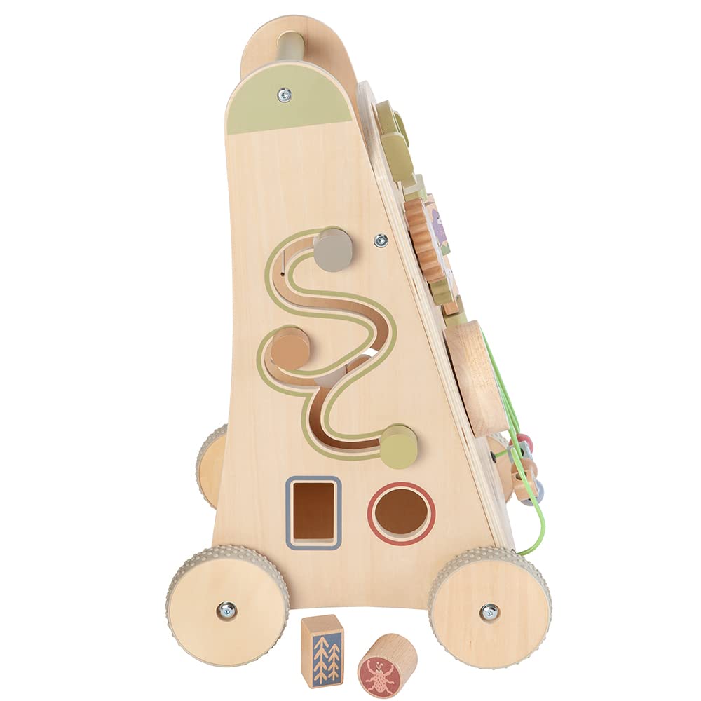 - Das vielseitige Motorikspielzeug aus Holz bietet viele Spielelemente wie: Zahnräder, Motorikschleife, drehbares Puzzle, Murmelrad, Spiegel, Steckpuzzle und Fenster zum Öffnen und fördert somit motorische Fähigkeiten, Sehsinn und Geschicklichkeit.