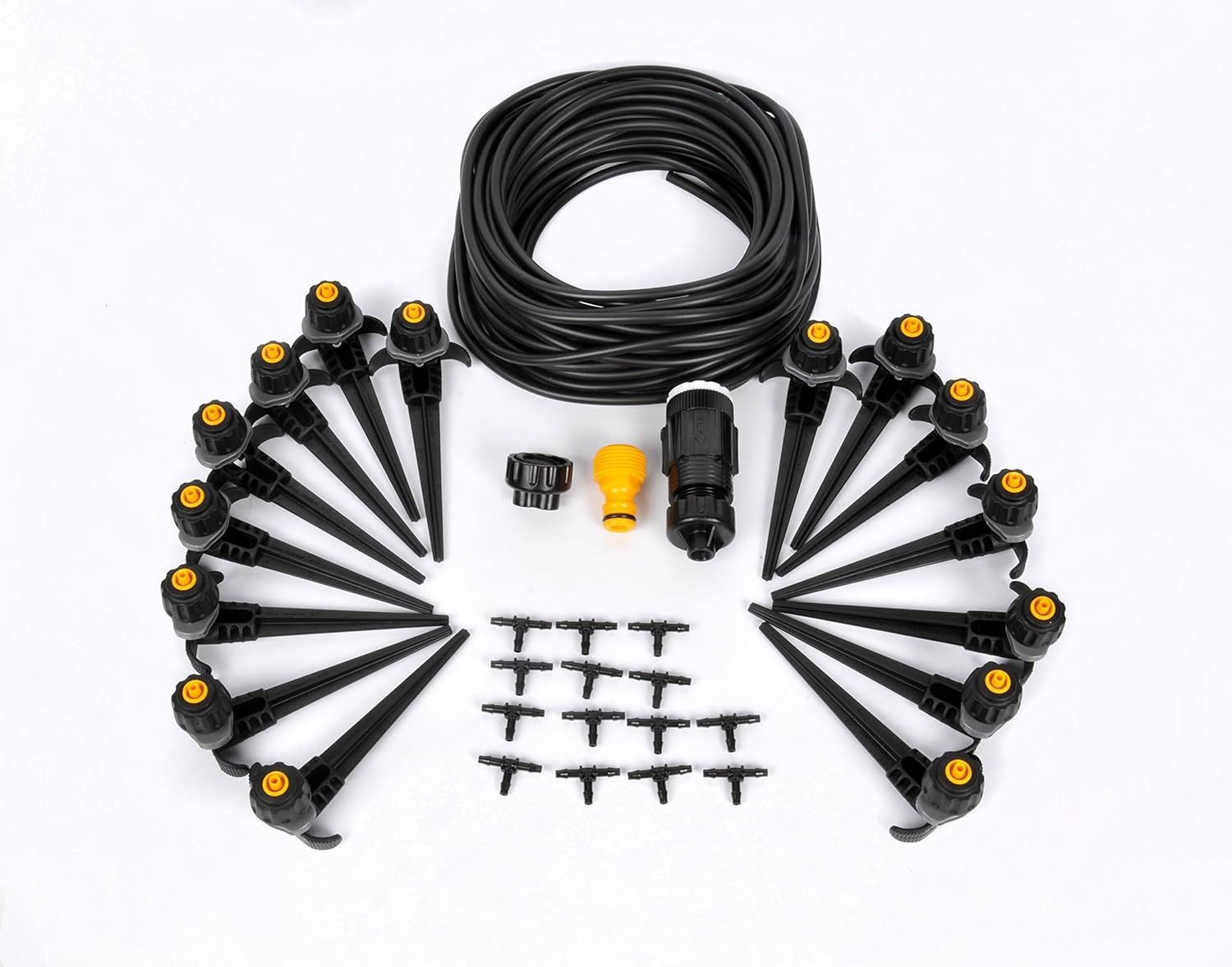 - 15m von 4 mm Mikroschlauch, 15x Micro Stakes Verstellbare Universal Drippers, 14x T Stück