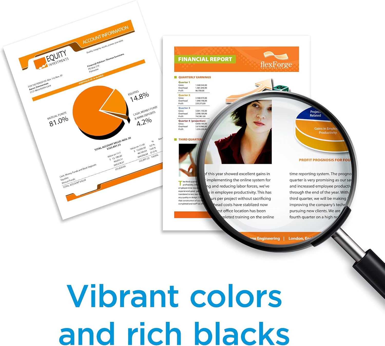 - Überzeugen Sie durch Dokumente und Marketingmaterialien in beeindruckenden Farben mit gestochen scharfem schwarzen Text.