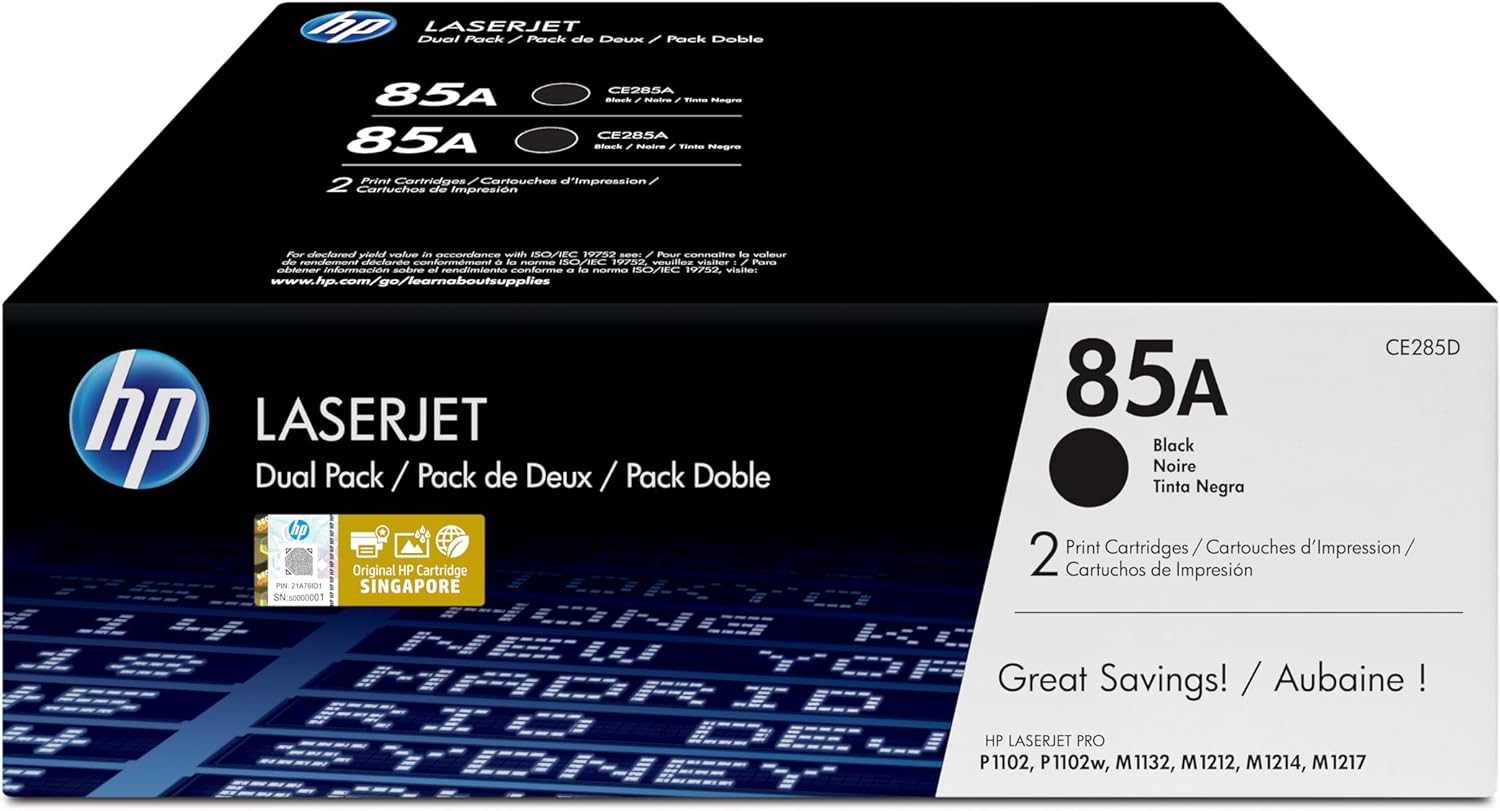- Lieferumfang: HP 85A 2er-Pack Original LaserJet Tonerkartuschen (CE285AD) schwarz, 2 Druckkassetten, Recycling-Anleitung