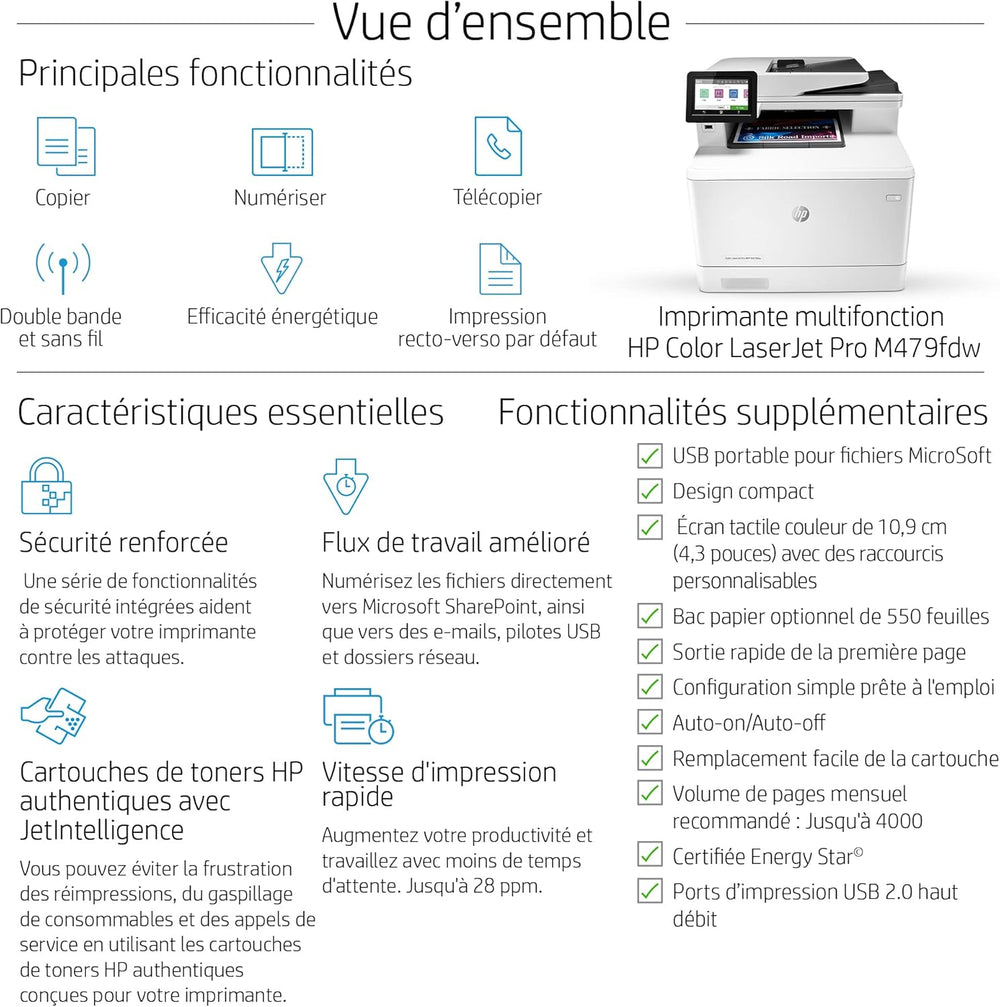 - Lieferumfang: HP Color LaserJet Pro M479fdw Multifunktionsdrucker (W1A80A); HP 415A LaserJet Tonerkartuschen (CMYK); Kurzanleitung; Garantieinformationen; Netzkabel
