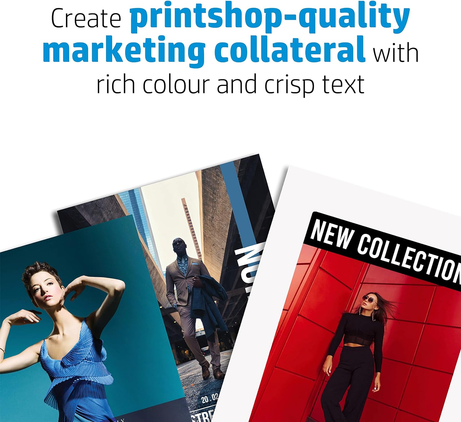 - Drucken Sie scharf gestochene Grafiken in satten Farben – ideal geeignet für alltägliche Geschäftsprojekte, für die ein hochwertiges, schweres Hochglanzpapier für den professionellen Einsatz benötigt wird