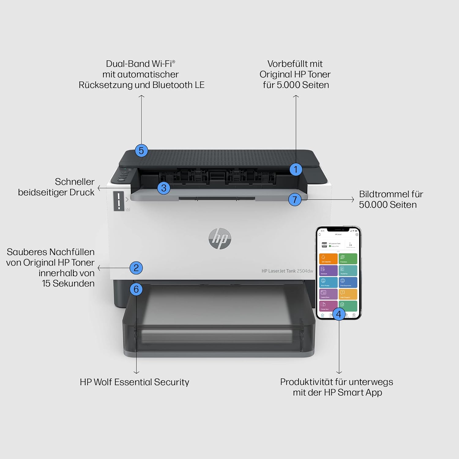 - Erleben Sie hochwertige Druckqualität und schonen Sie Ihren Geldbeutel: Profitieren Sie von extrem niedrigen Betriebskosten mit 5.000 Seiten vorgefülltem Toner, und sparen Sie mit dem HP Toner-Nachfüllkit