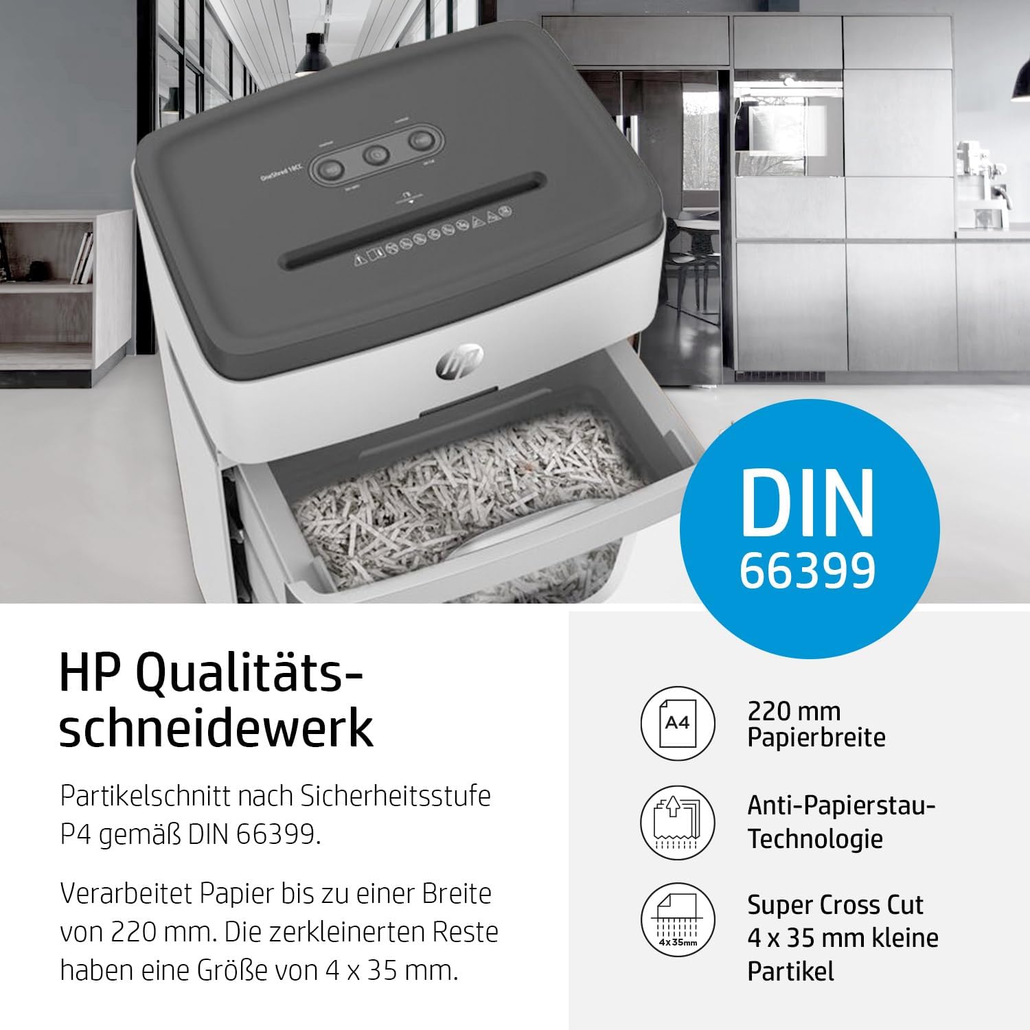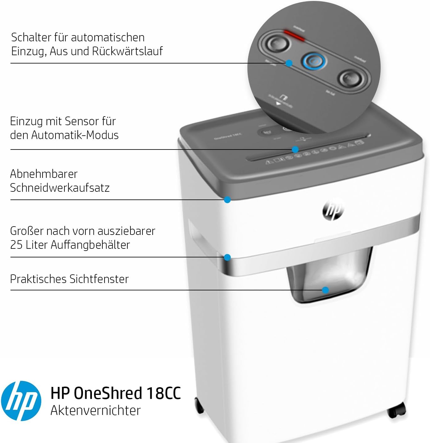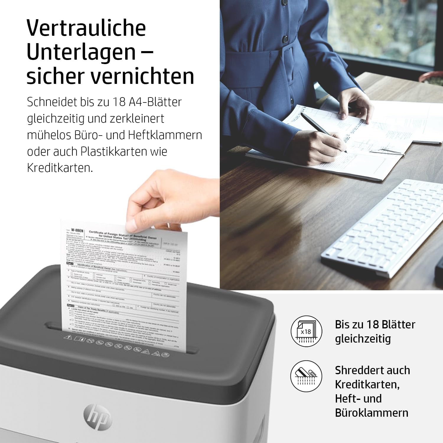 - Aktenvernichter im Partikelschnitt für 18 DIN A4-Blätter oder eine Kreditkarte, ideal für grössere Büroumgebungen