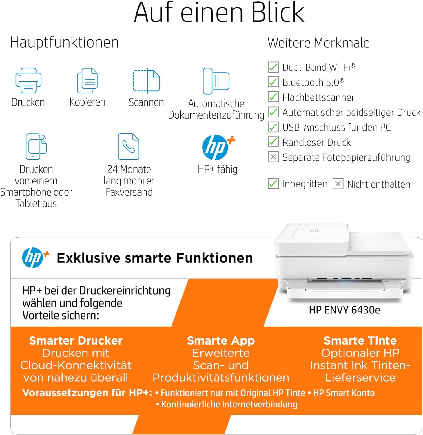 - HP+ Aktivierung: Einfach HP+ aktivieren während der Druckerinstallation und für Instant Ink registrieren, HP+ Erfordert ein HP-Konto, eine kontinuierliche Internetverbindung und die exklusive Verwendung von Original HP Tintenpatronen über die gesamte