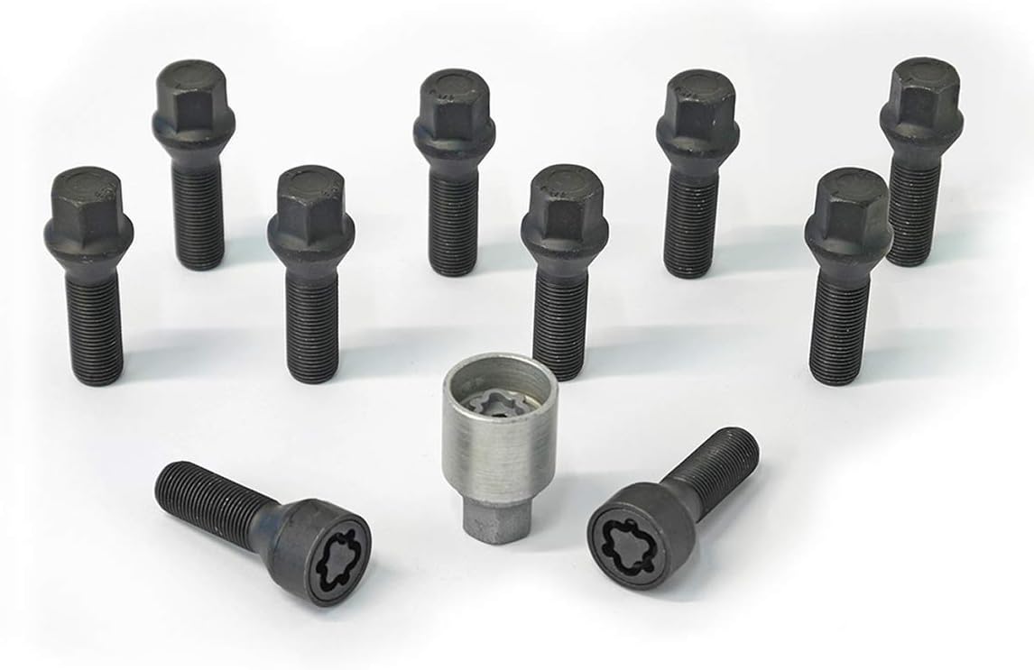 H&R Radschrauben Satz Kegelbund M14x1.50 - Länge 43mm - Schwarz - 10 Stück - inkl. Felgenschloss