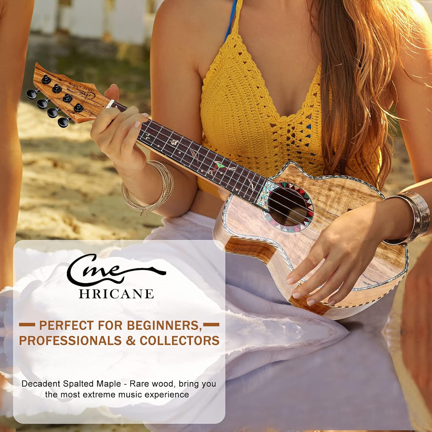 - 【Gespaltenes Ahornholz】Spalted Maple ist eigentlich eine Art verwelktes oder zerfallendes Ahornholz. Dieses Material mit glänzender, satinierter Lackierung kann die Klangreichweite der Ukulele weiter machen und das Aussehen schöner machen. Diese