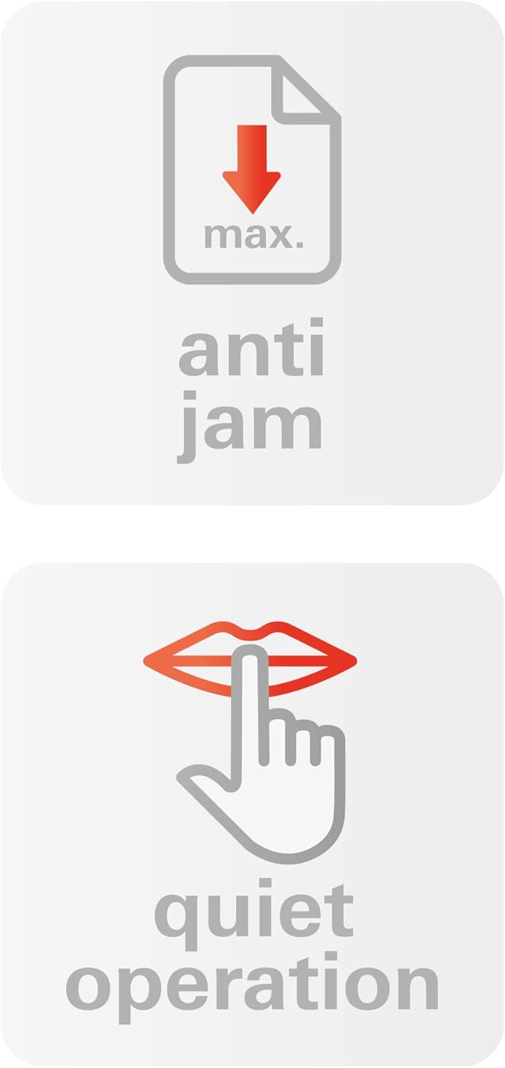 • Praktische Start-Stopp-Automatik und Anti-Papierstau Funktion für einen reibungslosten Betrieb, LED Anzeige für Power und Papierkorb voll, 2 Jahre Garantie