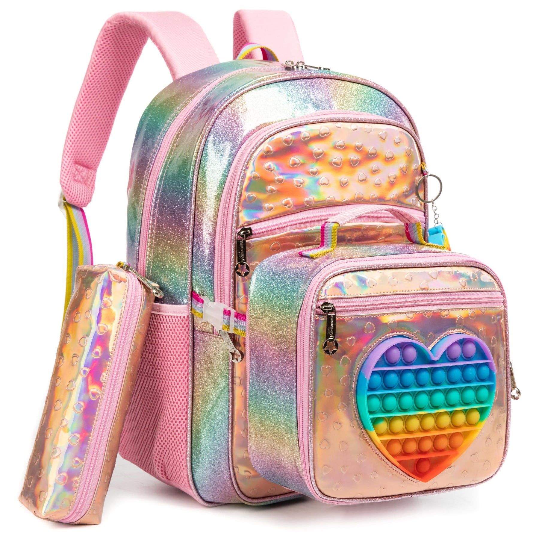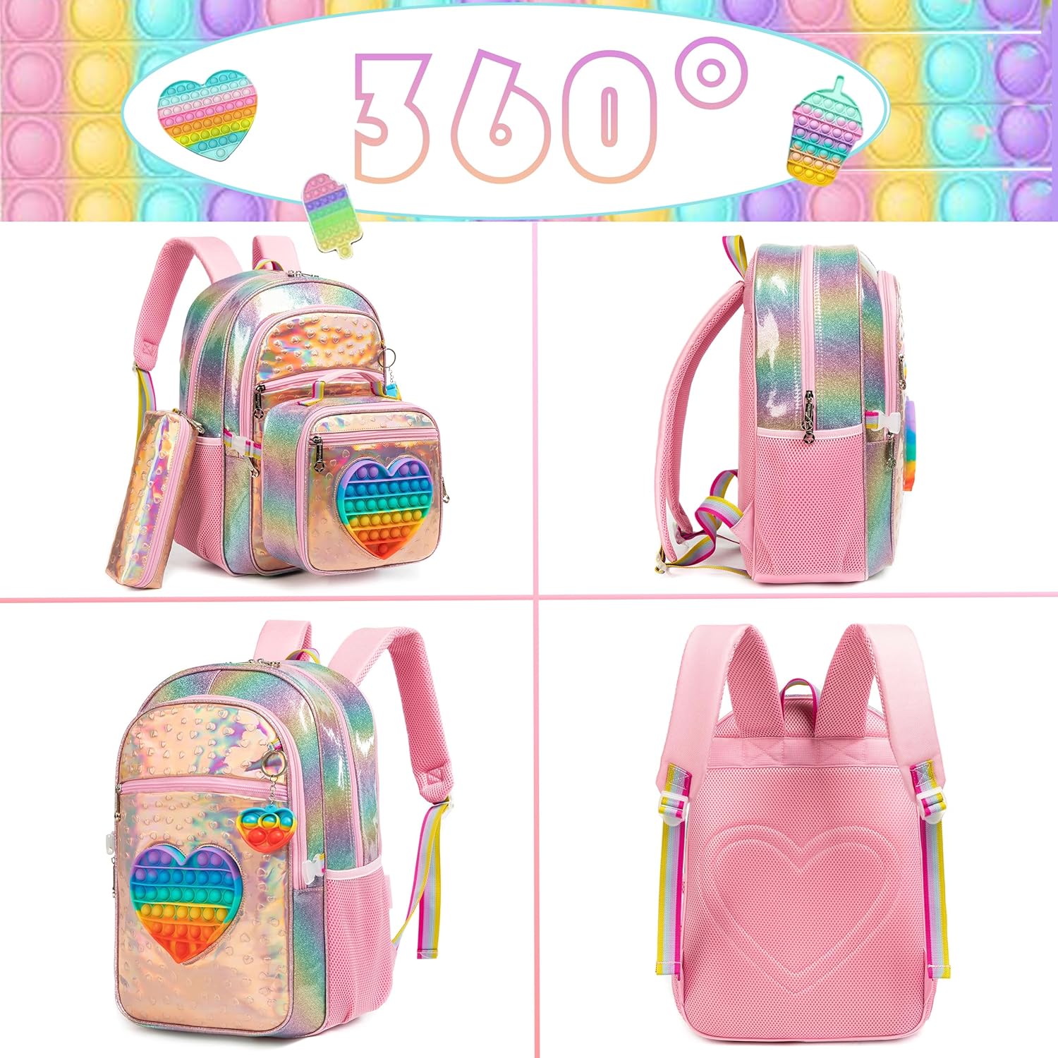 - 🦄Grösse des grossen Pop Fidget-Rucksacks: 43 cm x 19 cm x 30 cm, 24,5 l; Lunchpaket: 26 cm x 20 cm x 16 cm; Stifttasche: 21 cm. Diese Schultasche ist gross genug, um alle Gegenstände aufzunehmen, die Ihr Kind braucht. Geeignet für Party, Schule,