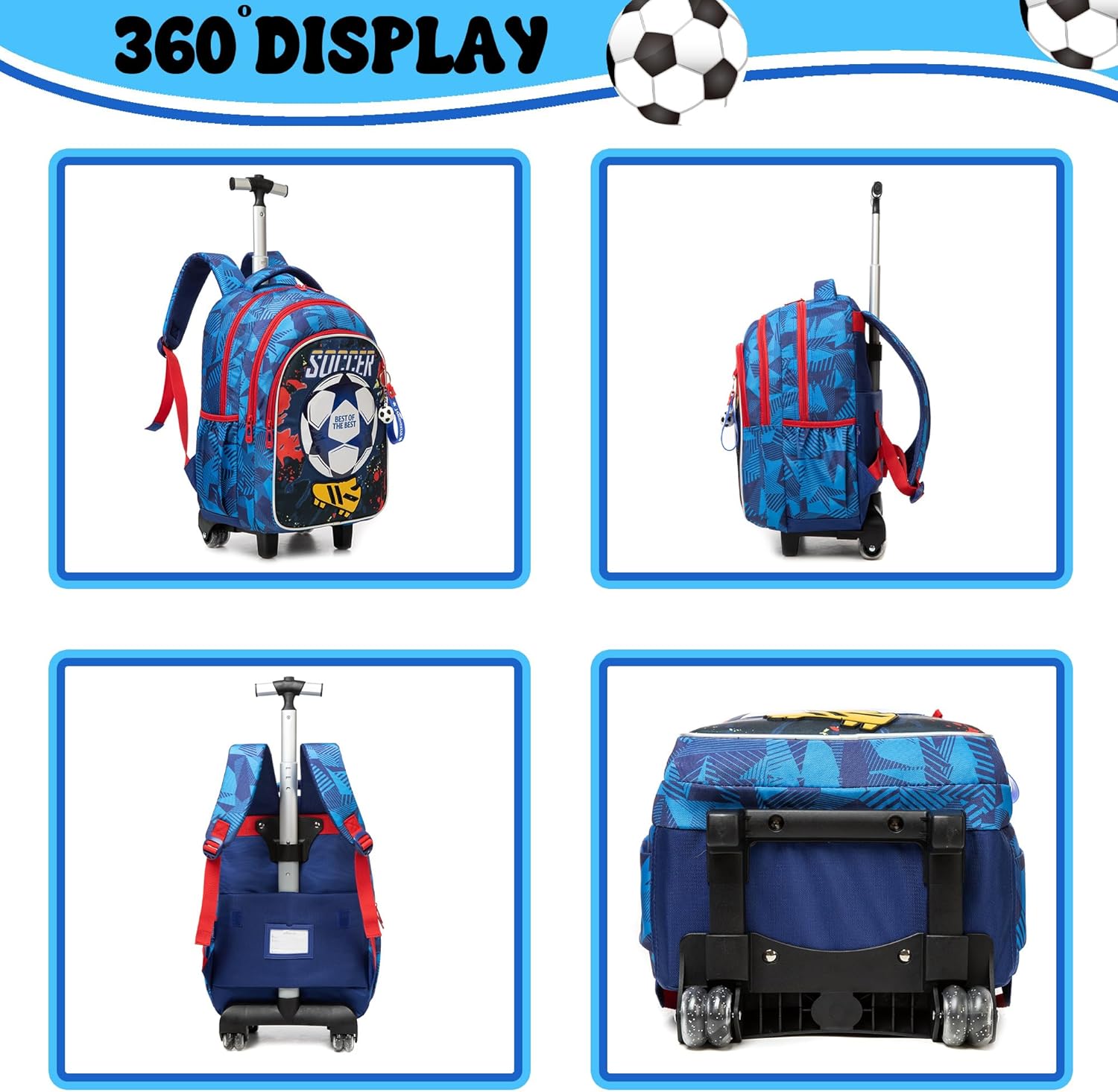 HTgroce Schulranzen mit Rollen, Rucksack mit Trolley für Kinder, für Schule, Reisen, Blau Fußba