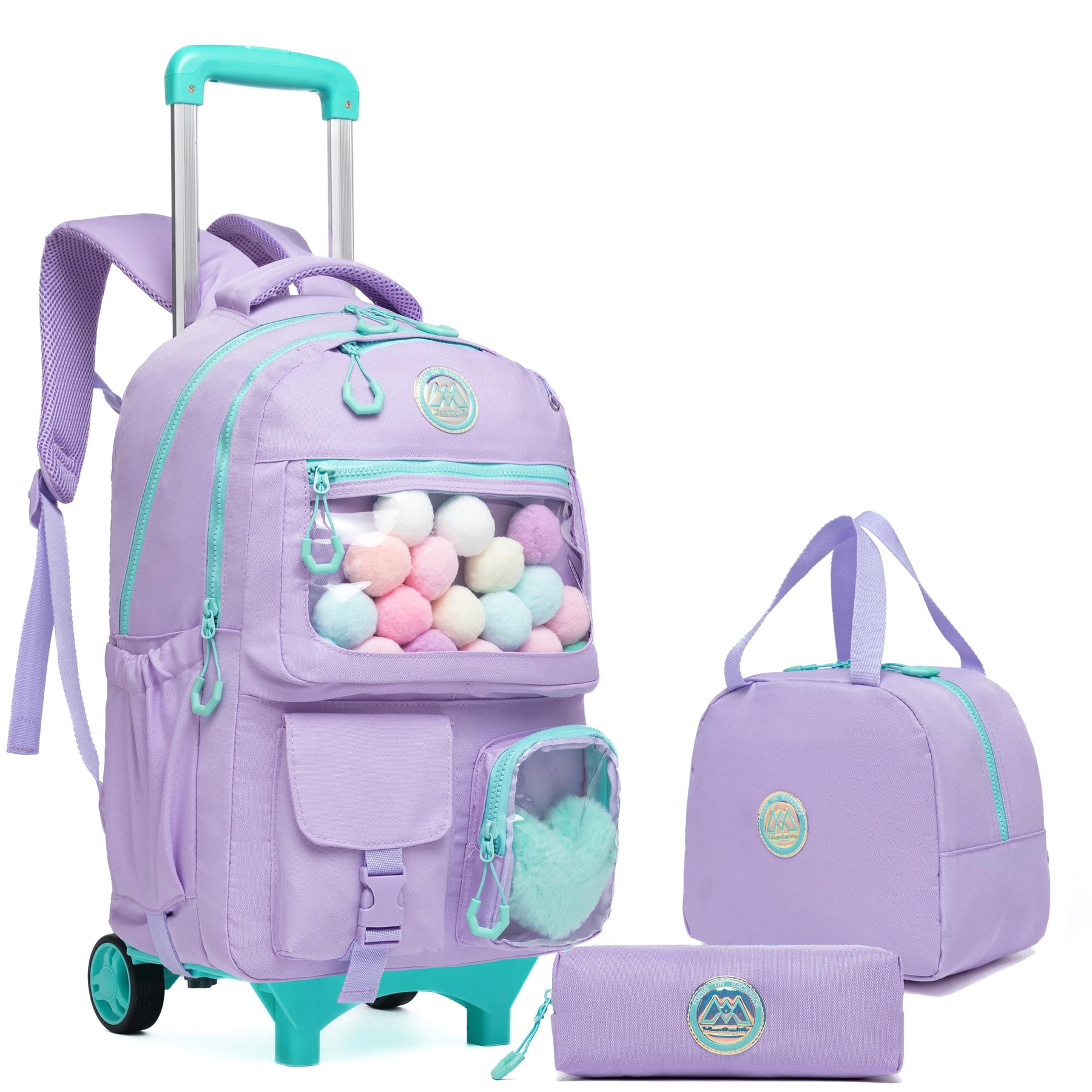 - Schulranzen Trolley Set: Schulranzen Trolley Mädchen: 43 x 30 x 18CM, Lunchtasche: 27 x 15CM, Federmäppchen: 22CM. Dieser Rucksack mit Rädern kann Ihre Kinder zufrieden stellen, ihre täglichen Schulsachen zu laden.