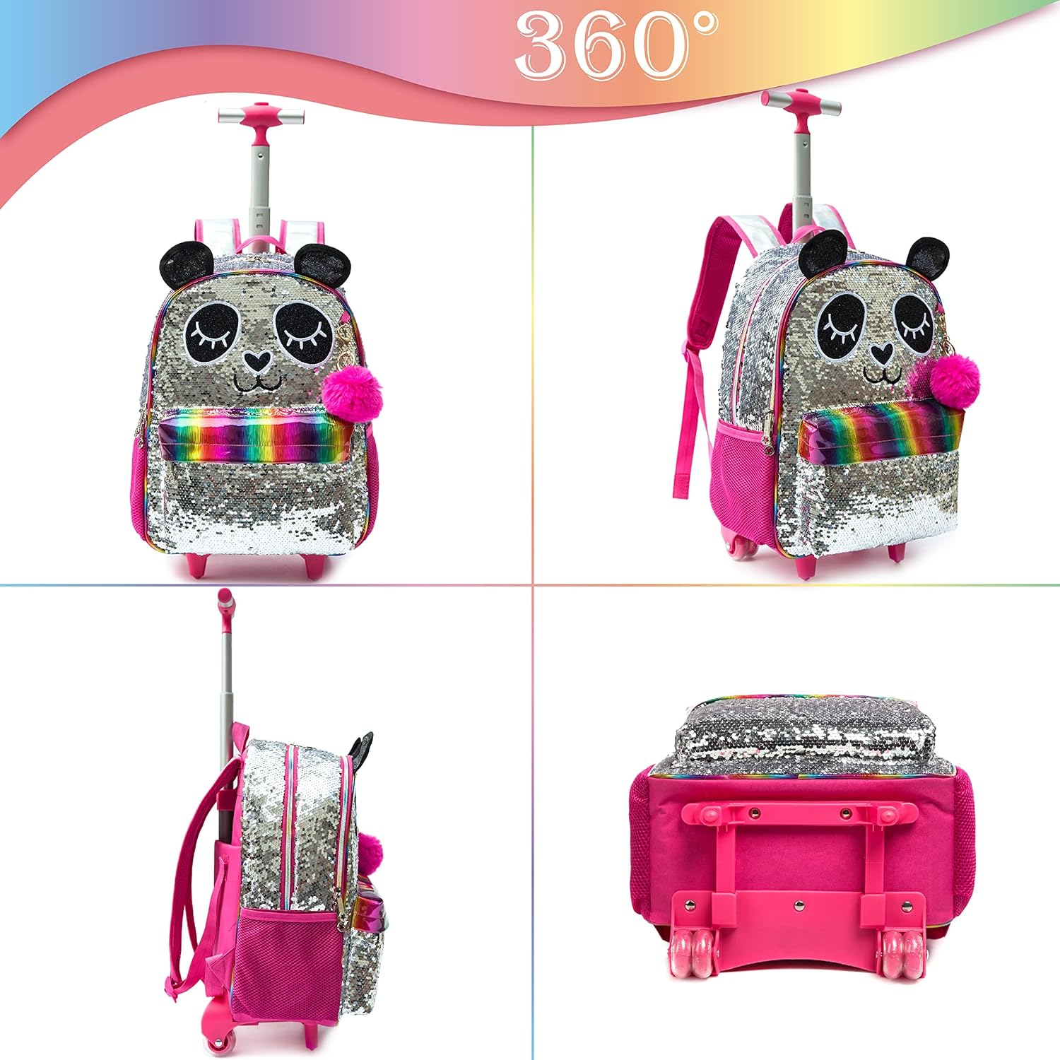 - 💐Panda-Design: Die Oberfläche und die Seiten des Schulranzens sind mit Glitzer und Pailletten gestaltet, die Rückseite ist mit Leder gestaltet, das sich bei Flecken leicht abwischen lässt, und das niedliche Panda-Muster und die dekorativen