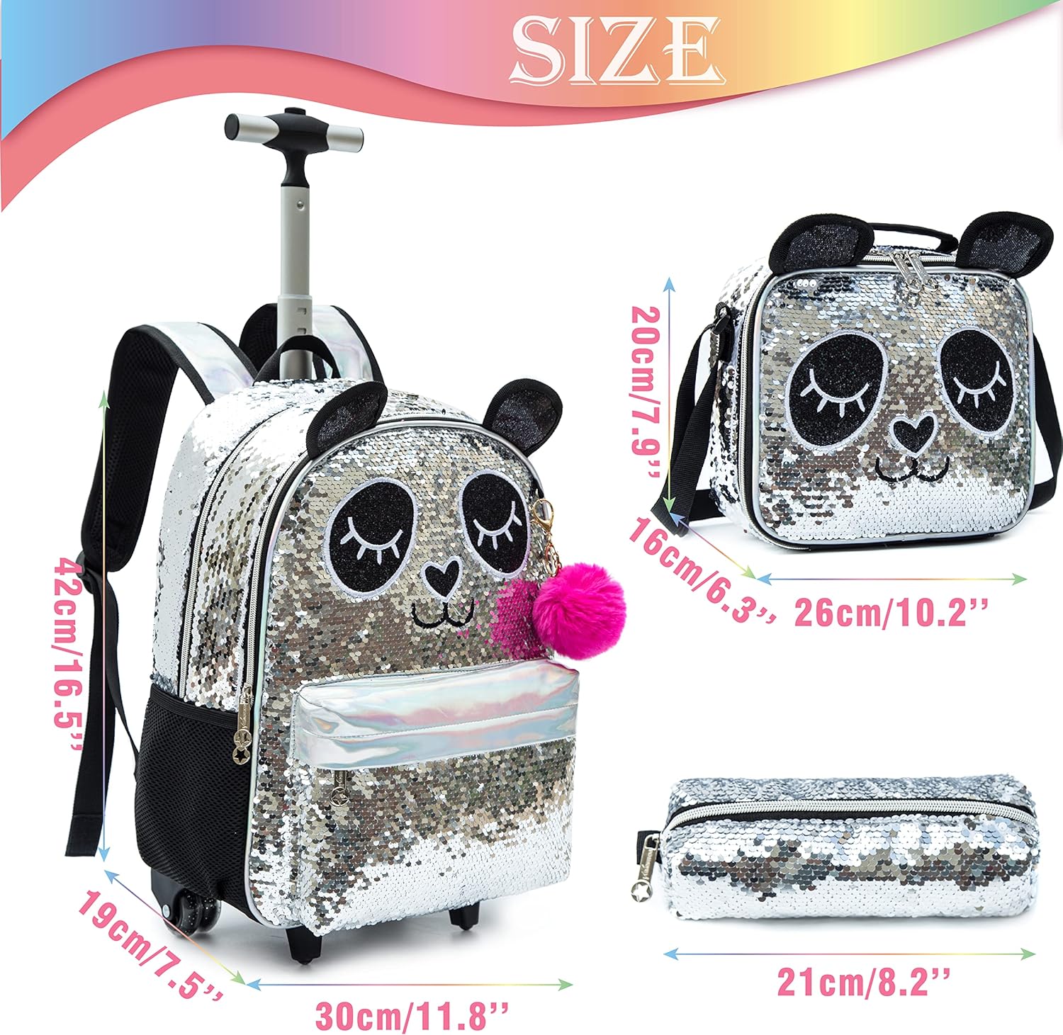 - 🎁Rucksack mit Rollen: 43 cm x 30 cm x 17 cm; Lunchpaket: 24 cm x 21 cm x 7 cm; Federmäppchen: 21 cm.