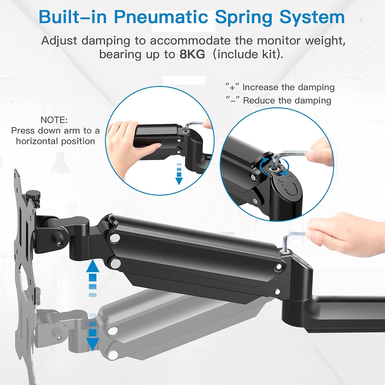 - Lange Lebensdauer - Die Monitor Halterung ist mit einer ultrapräzisen Gasdruckfeder ausgestattet und kann stufenlos und ohne Jitter und Rauschen an Ihre Bedürfnisse angepasst werden. Die Premium-Gasfeder hat Bewegungstests mit 20.000 Kreisen bestanden, die eine störungsfreie Bewegungseinstellung von mindestens 5 Jahren (bei 10-maliger Einstellung pro Tag) gewährleisten