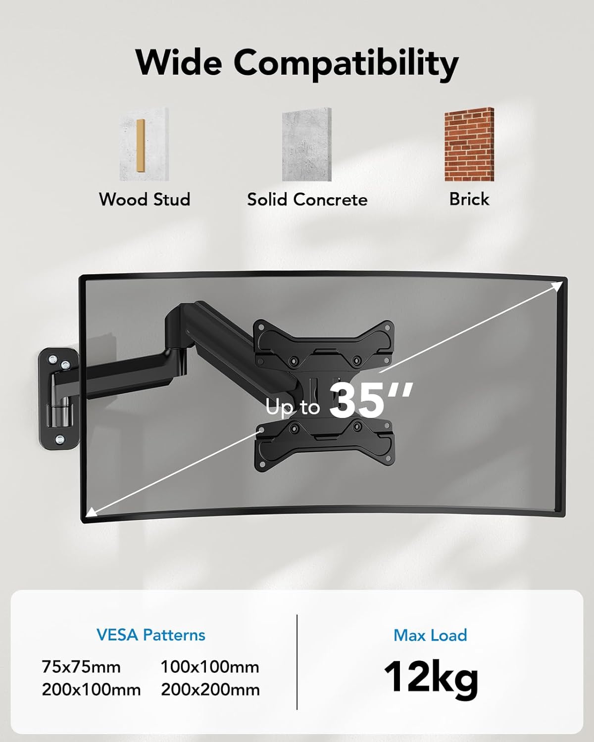 - [Einzigartiges Design] Die mitgelieferte VESA-Verlängerungsleiste erweitert die VESA-Boardgrösse auf max. 200 x 200 mm, die Monitor Wandhalterung unterstützt ultraweite Monitore mit einer VESA-Grösse von 75 x 75/100 x 100/100 x 200/200 x 200 mm. Im