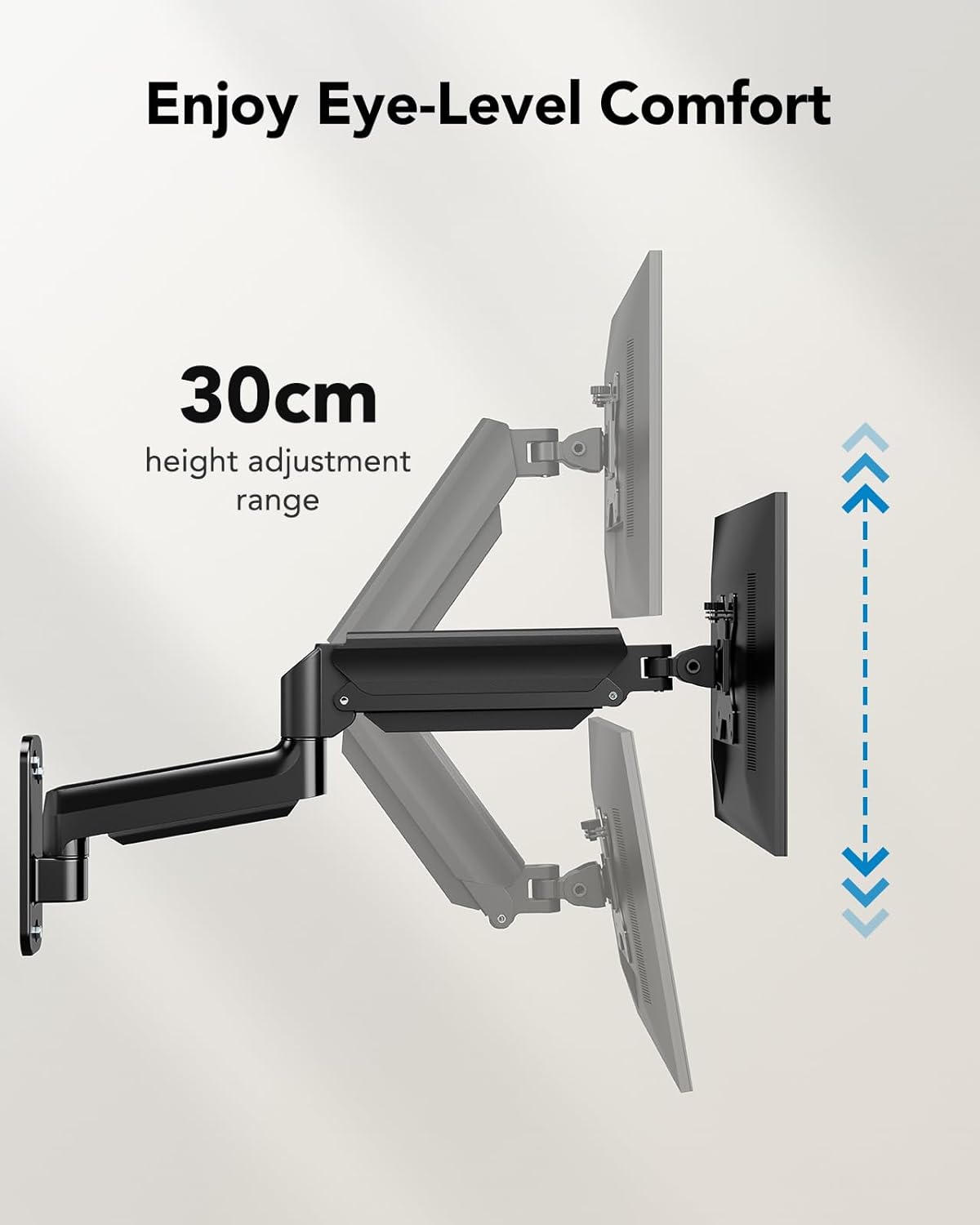 - [Verstellbar] Die Monitor Wandhalterung kann in jedem Winkel ohne zusätzliche Arbeit absolut stabil bleiben. Winkel oder Höhenverstellung können einfach mit einer Hand durchgeführt werden, um Ihre verschiedenen Betrachtungswinkel und