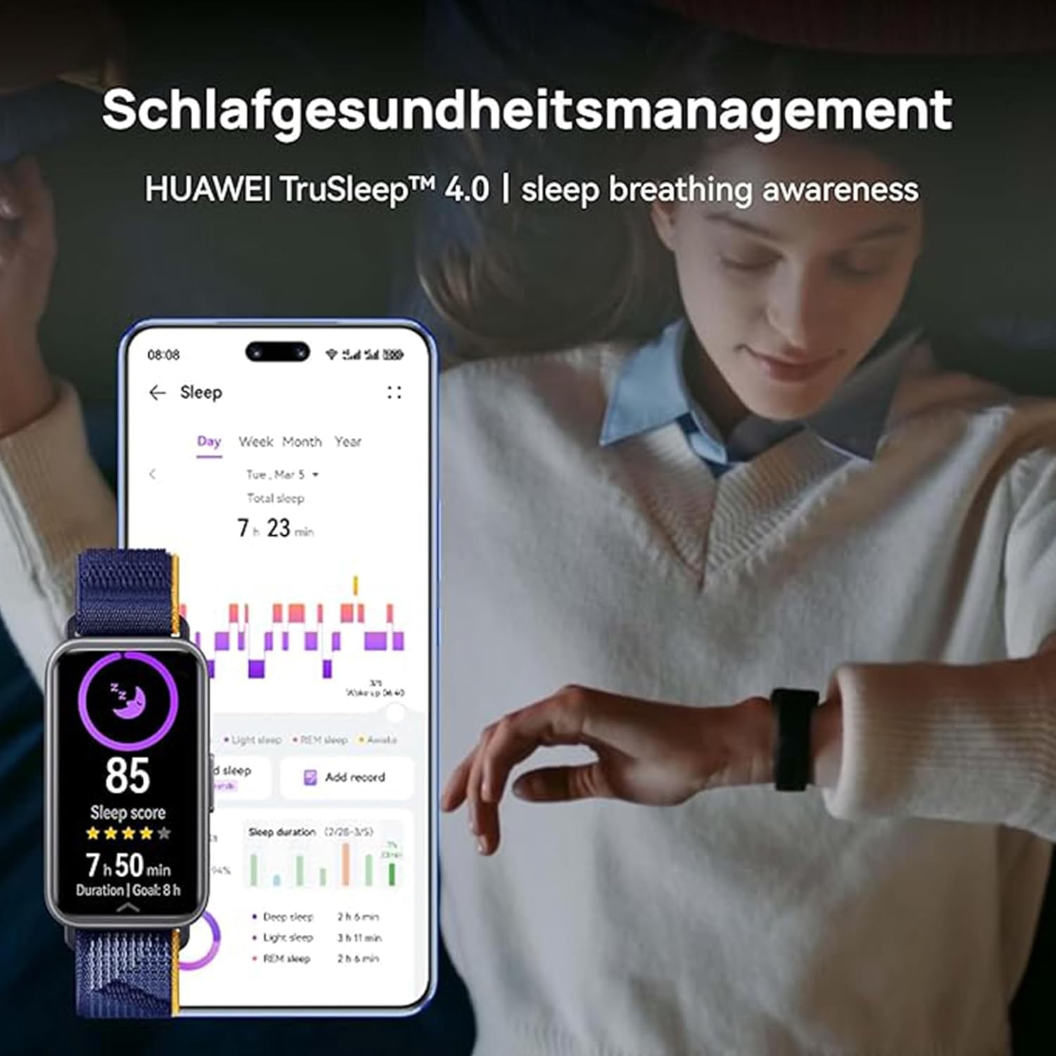 - 【Schlafgesundheitsmanagement】HUAWEI TruSleep 4.0, Schlaffeffizienzanalyse und Schlafatmungsbewusstsein. Behalte deinen Herzschlag, SpO2, Atemfrequenz und jede abnormale Atmung im Auge, während du schlummerst, für einen entspannten und