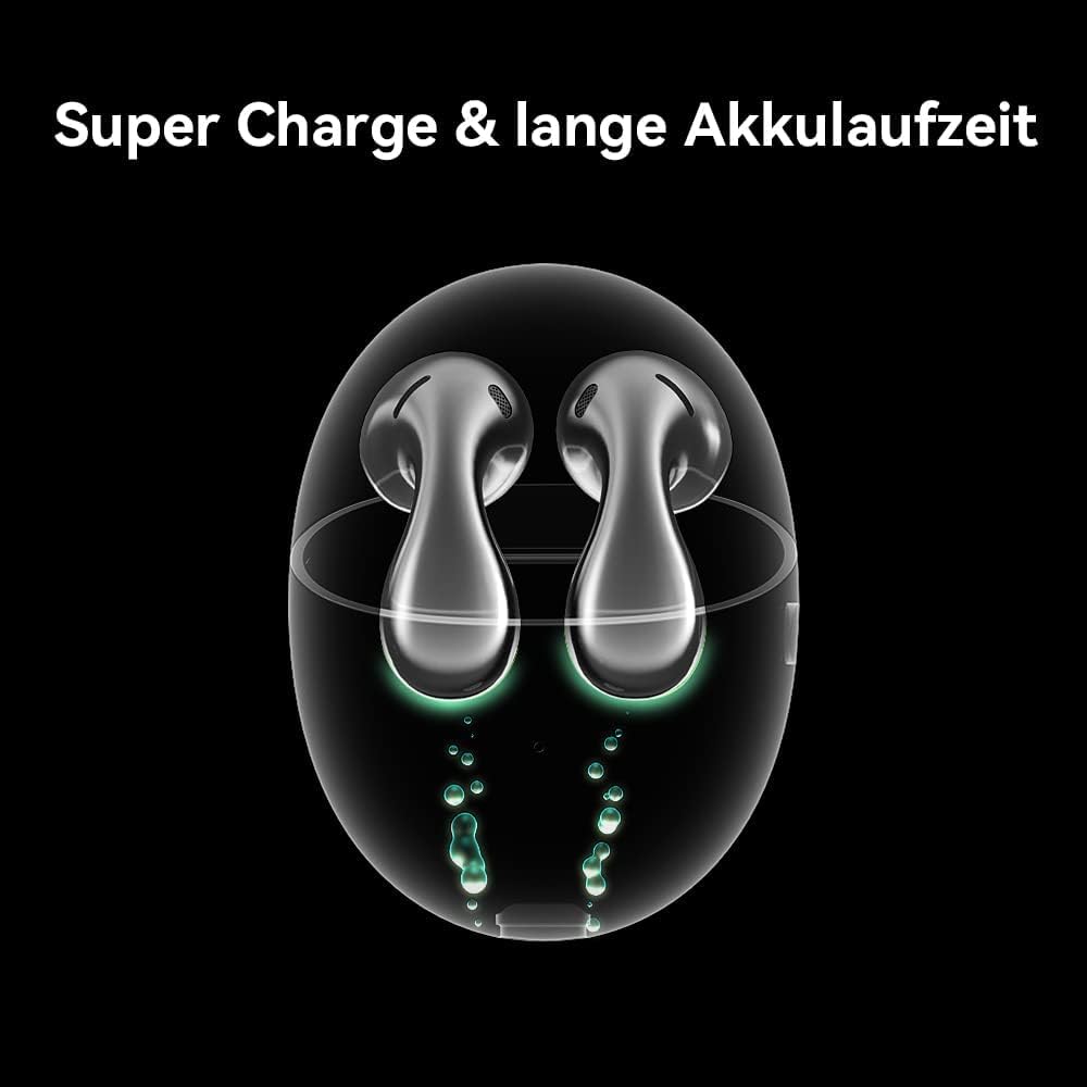 - Bis zu 30 Stunden Musikwiedergabe:Laden ihre HUAWEI FreeBuds 5 im Ladecase nur fünf Minuten und nutze sie ununterbrochen bis zu zwei Stunden. Vollständig geladen können die Kopfhörer bis zu fünf Stunden und mithilfe mehrerer Aufladungen im