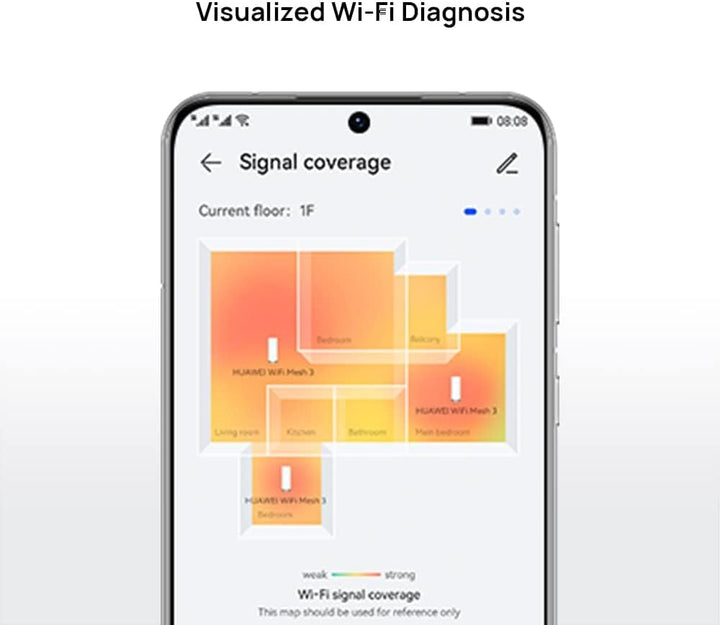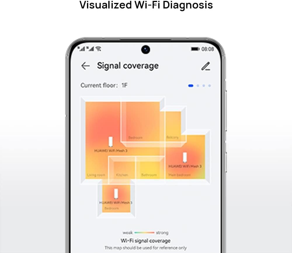 - Visualisierte WLAN-Abdeckung*, Fehlerbehebung mit einem Klick: Verwalten Sie das WLAN Ihres gesamten Zuhauses und erkennen und beheben Sie Netzwerkprobleme – alles mit ein paar Fingertipps in der HUAWEI AI Life-App. *: Kompatibel mit Android-Telefonen.