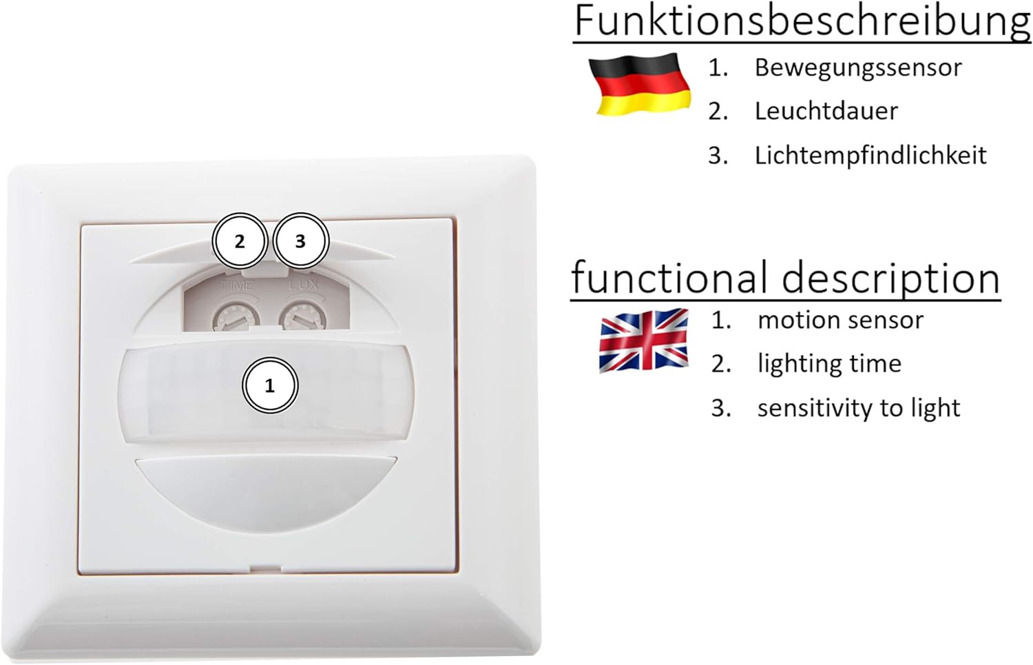 - 💡DÄMMERUNGSSCHALTER - Die Dämmerungsempfindlichkeit des Infrarot Bewegungsmelders lässt sich zwischen 1 und 2000 Lux einstellen und bietet daher allerlei Verwendungsmöglichkeiten. Entscheiden Sie selbst!