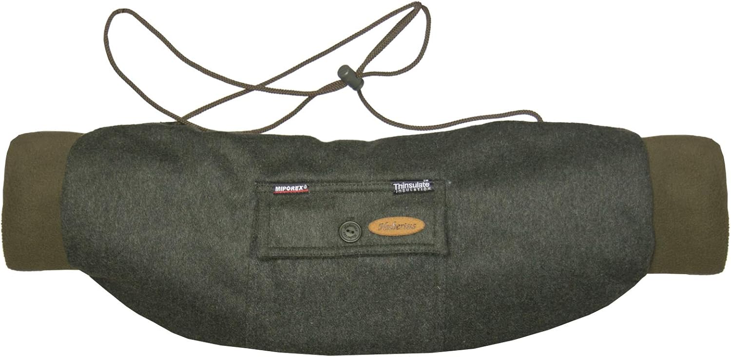 PRODUKTBESCHREIBUNGEN Lodenmuff Hubertus aus hochwertigem, schön meliertem, strapazierfähigem und warmem Loden. Der praktische Handwärmer verfügt über eine dicke Thinsulate Thermofleece-Isolierung. Mollig warme Hände dank Fleecefutter, welches bis zur weiten, beidseitigen Öffnung reicht. Die extrem geräuscharme Miporex Membran macht den Lodenmuff wasserdicht, winddicht und atmungsaktiv. Oefele.de Weitere Details: sehr leicht stark isolierend nie wieder kalte Hände, 1 kleine aufgesetzte Tasche zum Knöpfen mit integrierten Patronenschlaufen, geringe Feuchtigkeitsaufnahme, schnelltrocknend, elastischer Bund am Einstieg, Tragegurt mit längenverstellbarer Kordel, Material: Loden aus 65% Wolle, 35% Polyester, Fleece aus 100% Polyester, Farbe: oliv, Einheitsgrösse.
