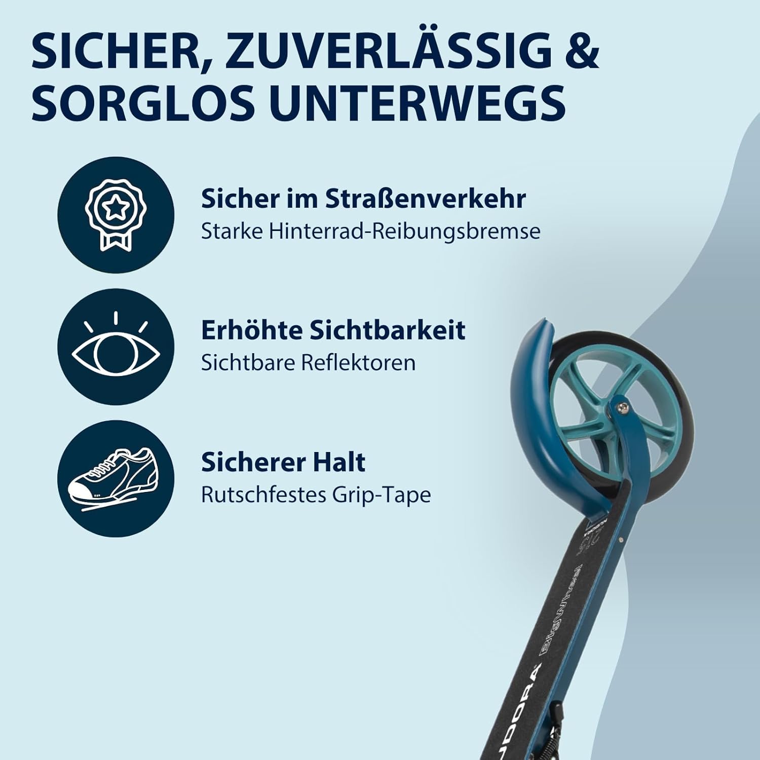 - FALTBAR: Für leichten Transport, dank innovativem One-Push-Klappmechanismus
