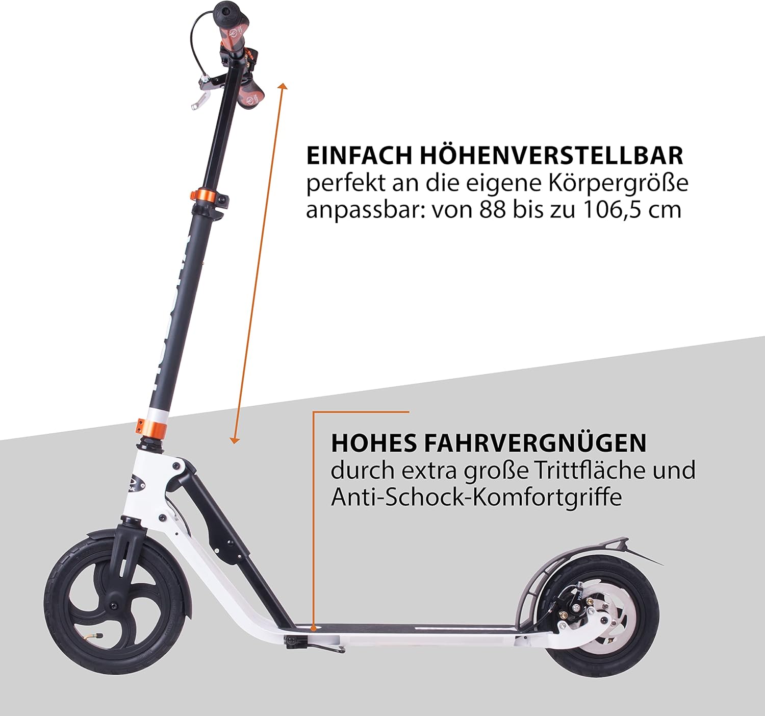 - Produkt 1: INDIVIDUELL - Der Roller ist zwischen 88-106,5cm höhenjustierbar. Durch die grossen Luftreifen kann er fast in jedem Terrain benutzt werden. Ausserdem hat die Dual Brake Version des Scooters einen Bremshebel am Griff.