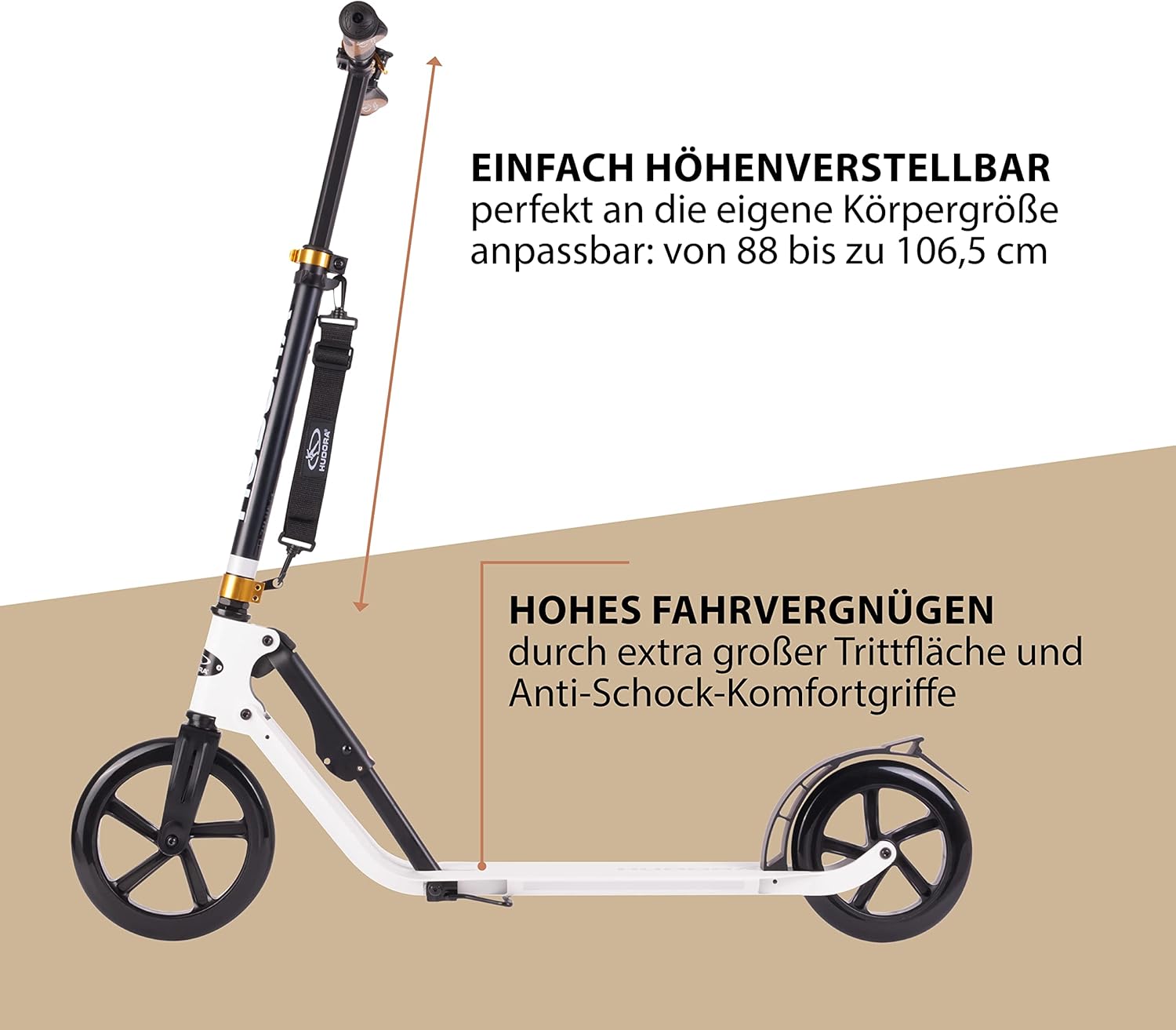 • Produkt 1: PRODUKT HIGHLIGHTS - Die Warnglocke, die Hinterradreibungsbremse & die Reflektoren des sportlichen HUDORA Scooters garantieren sicheres Fahren. Der integrierte Schmutzfang schützt den Fahrer zusätzlich bei Regen.