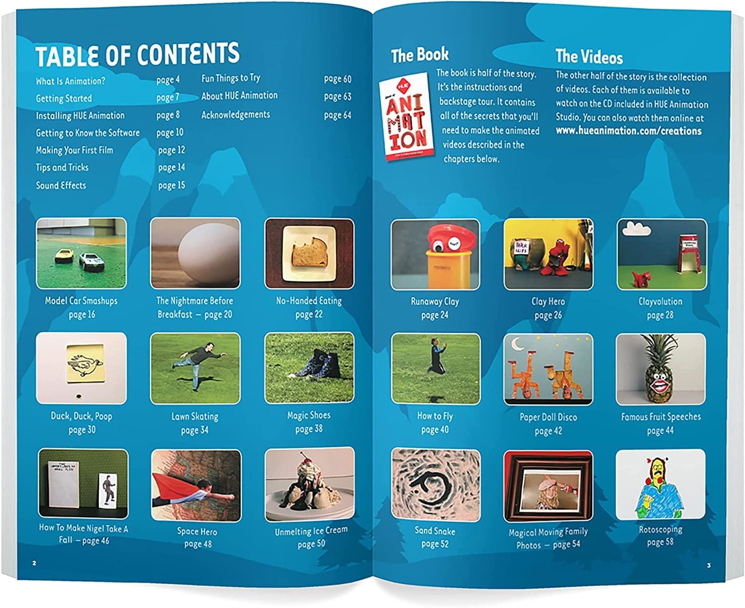 - KOMPLETTES STOP MOTION ANIMATION PAKET mit HUE HD USB Kamera, integriertem Mikrofon und 64 Seiten vollfarbigem Anleitungsbuch für Kinder und Erwachsene. Inklusive einer Mini-Bühne mit Hintergrundkulisse, Online-Tutorials, Beispiele zum Ausdrucken,