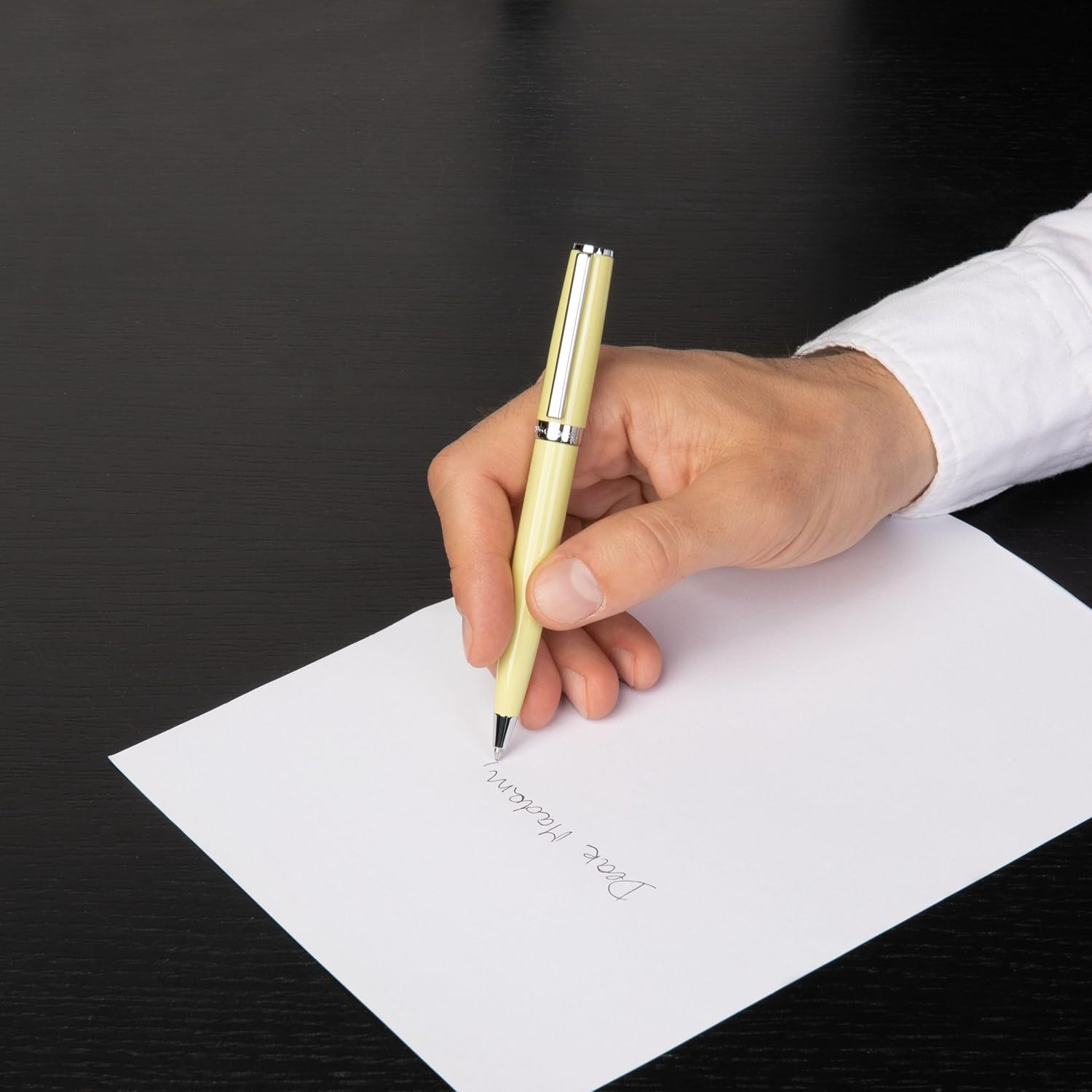 Hugo Boss Gear Icon Kugelschreiber aus Messing mit Chrome Beschichtung in der Farbe Yellow, Masse: 1