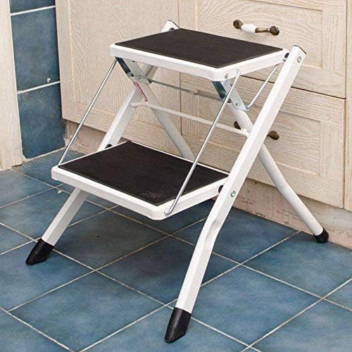 - 2-Stufen-Mini Stehleitern Mit rutschfester Matte, breiten Stufen und Gummimatten, um ein Verrutschen zu verhindern