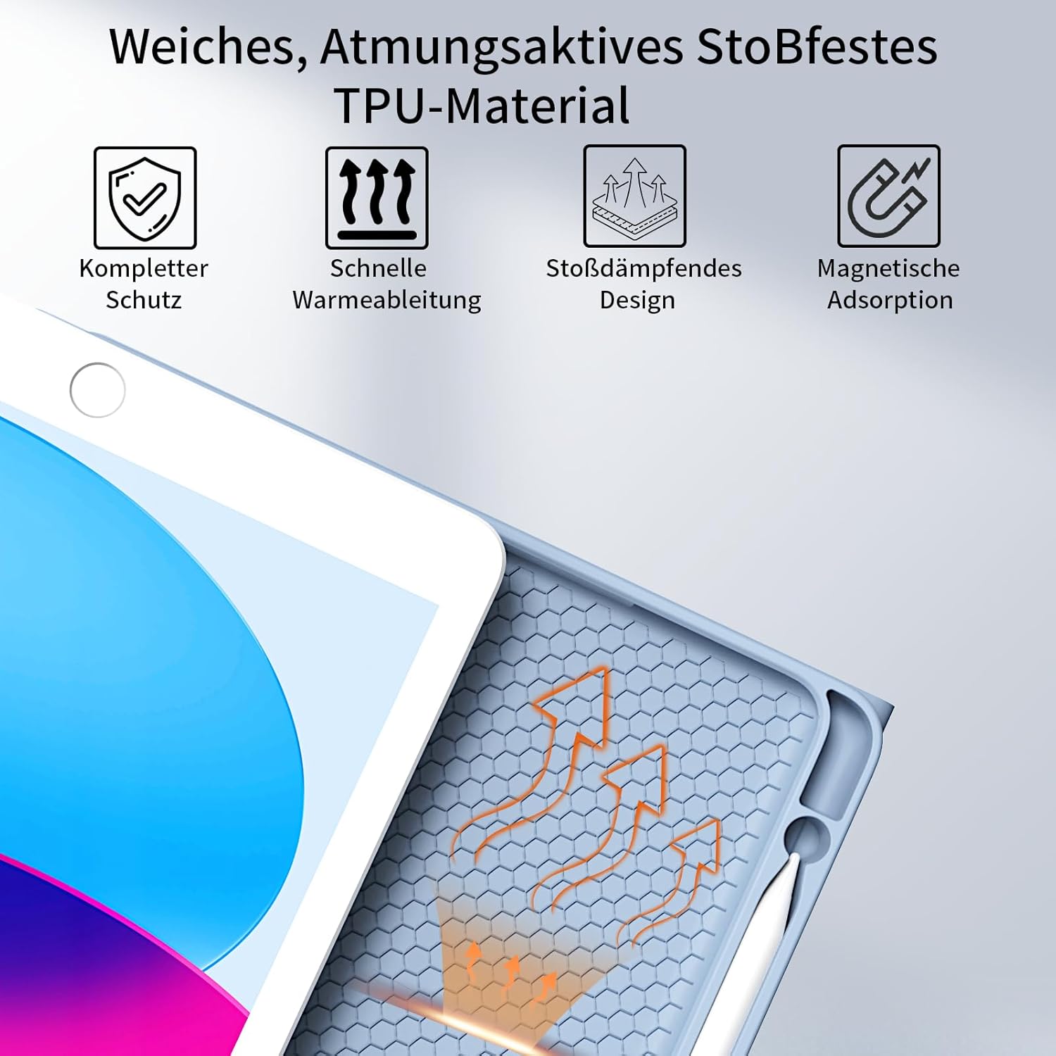 - 【Aufladbar und Langlebige Batterie】 Unsere ipad tastatur 9. generation verfügt über einen eingebauten Akku mit 400mAh grosser Kapazität, was energieeffizienter ist und den Verbrauch reduziert. Das gewährleistet eine Nutzungsdauer von mindestens