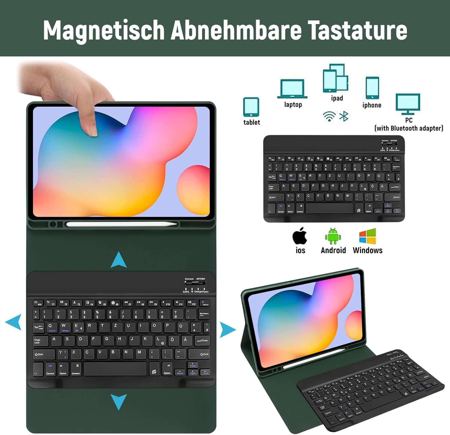 - 【Hülle mit Tastatur für Samsung Tab S6 Lite 】Die hülle mit tastatur ist speziell massgeschneidert für Samsung Galaxy Tab S6 Lite 10.4 2024/2022/2020 (P625/P620/P610/P615/P613/P619), mit Bluetooth tastatur (QWERTZ Layout), präzise aussparungen